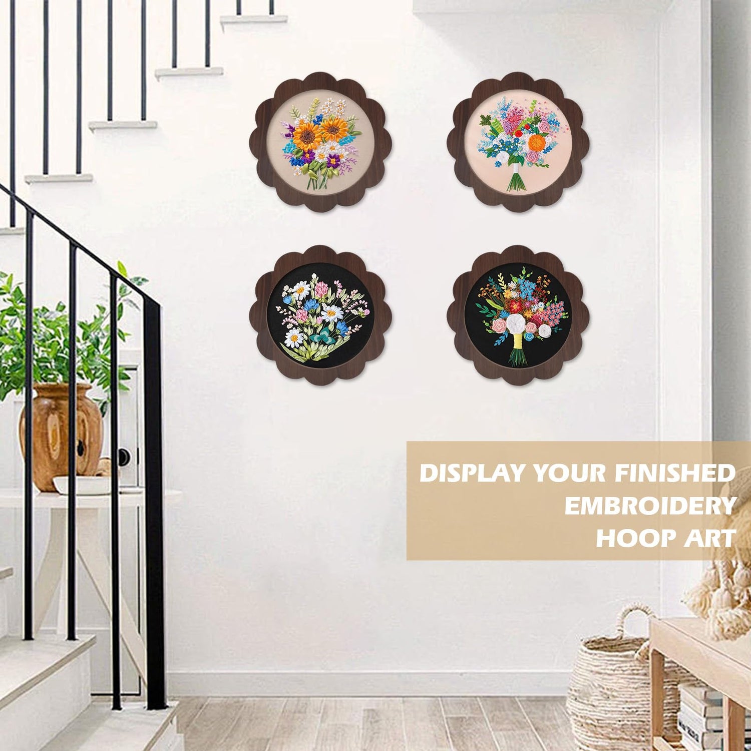 - 💡【8'' Wood Embroidery Hoop Frame】- This Round Embroidery Hoops Display Frame including 4 sunflower-shaped embroidery frames + 4 metal embroidery hoops. The retro embroidery frames bring an artistic & charming atmosphere to your embroidery project. The large-size design provide stable support, suitable for displaying embroidery and sewing crafts.