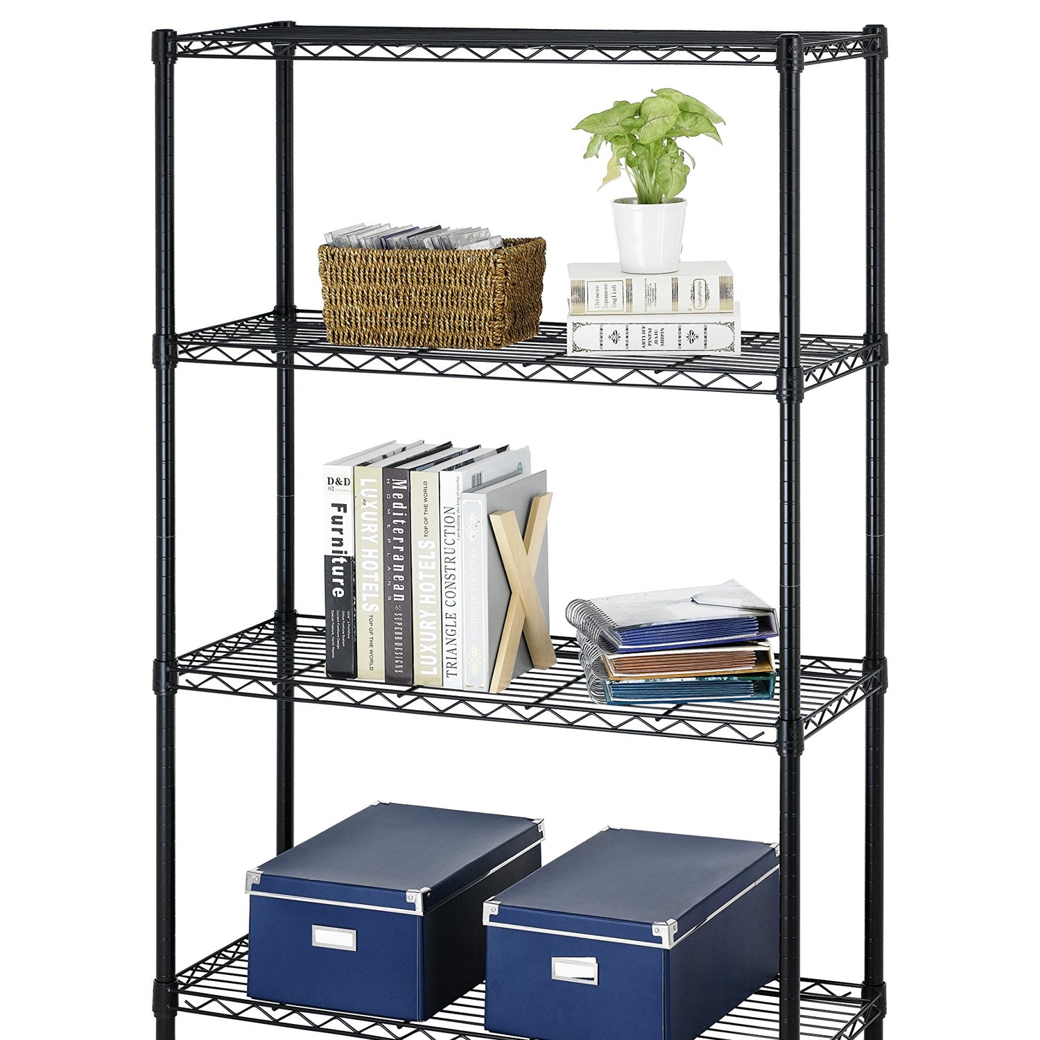 4 Shelf Wire Shelving Unit Garage NSF Wire Shelf Metal Large Storage Shelves Heavy Duty Height Adjustable Utility Commercial Grade Steel Layer Shelf Rack Organizer 1000 LBS Capacity 14x36x54,Black