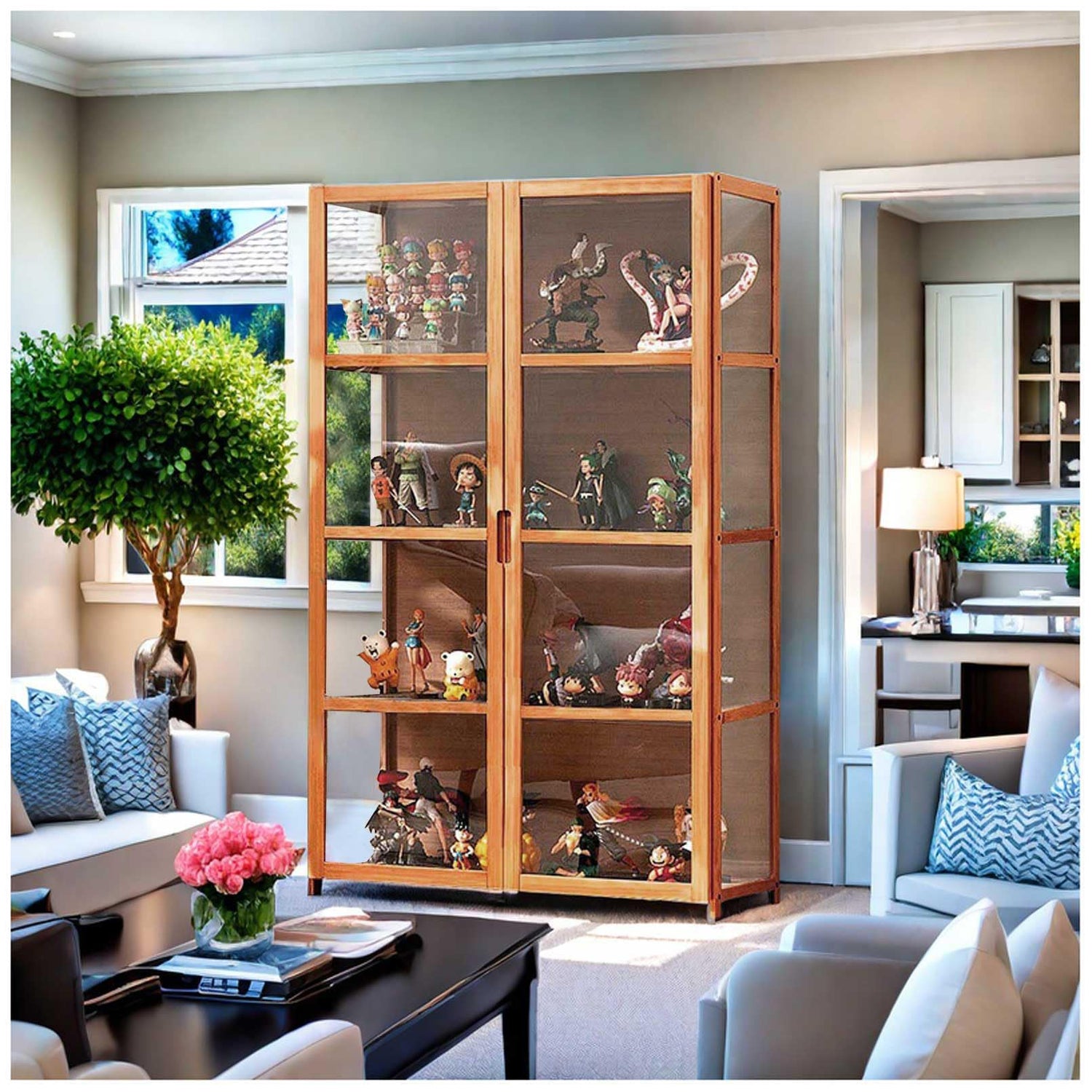 4-Tier Curio Cabinets with Acrylic Doors 51in Display Cabinet Natural Bamboo Frame,Safe and Healthy,Double Door Design for Convenient Storage,Sealed Dustproof,Easy to Clean,Brown,32 * 13 * 51in