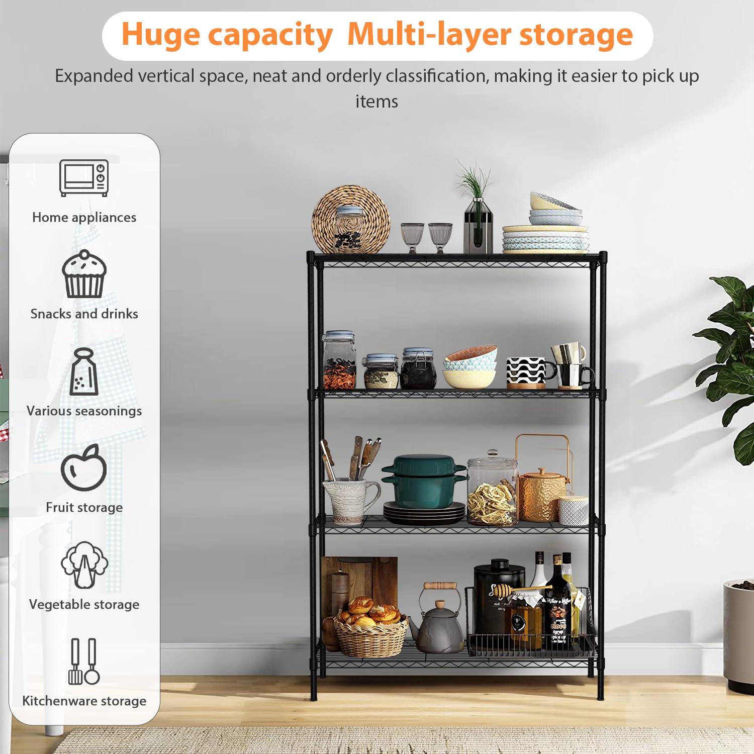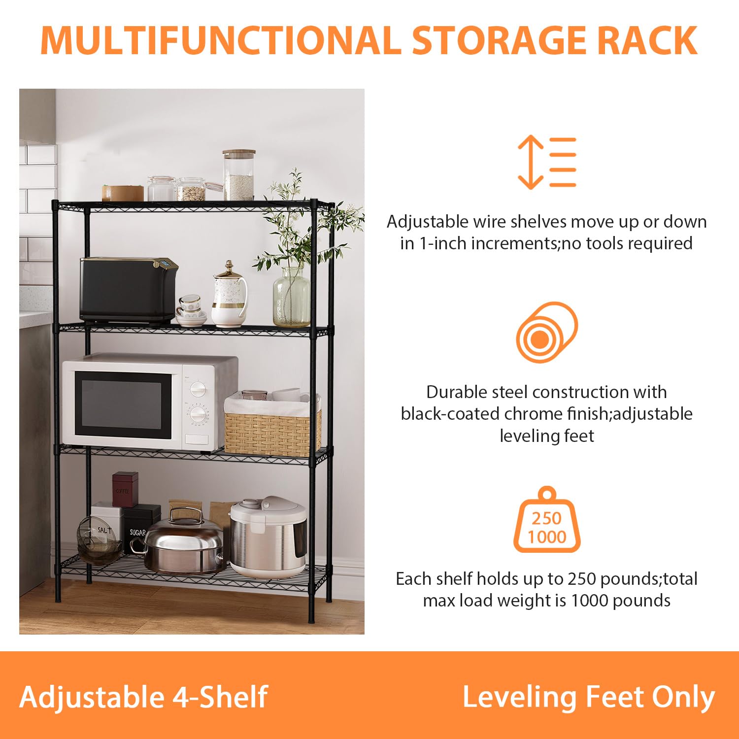 4-Tier Storage Shelves, 36Lx14Wx54H Wire Rack, Height-Adjustable Metal Shelving, Max Load 1000 LBS, Laundry to Garage, Black
