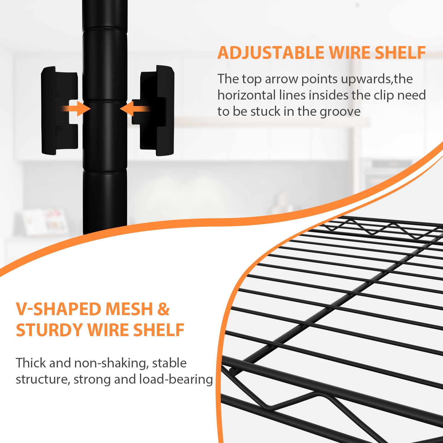 - 【Easy to Assemble】The pantry rack adopts a simple clip design for easy installation and removal. No nuts or bolts required, and you can quickly assemble each rack in 15 minutes to create a sturdy rack for storage. Metal storage rack, each level is height-adjustable and can be adjusted to your desired height or level. storage shelves, wire rack shelving, shelving units, metal storage shelves, utility shelf