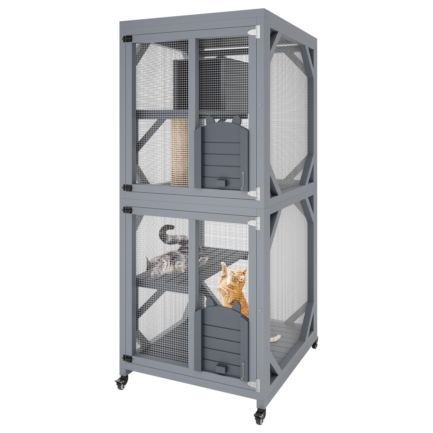 - Spacious & Multi-Level Design: The 68-inch cat enclosure features a 4-tier design that accommodates 2-3 cats, with a cozy napping house, a sturdy sisal scratching post, and three jumping platforms for ample exercise and relaxation