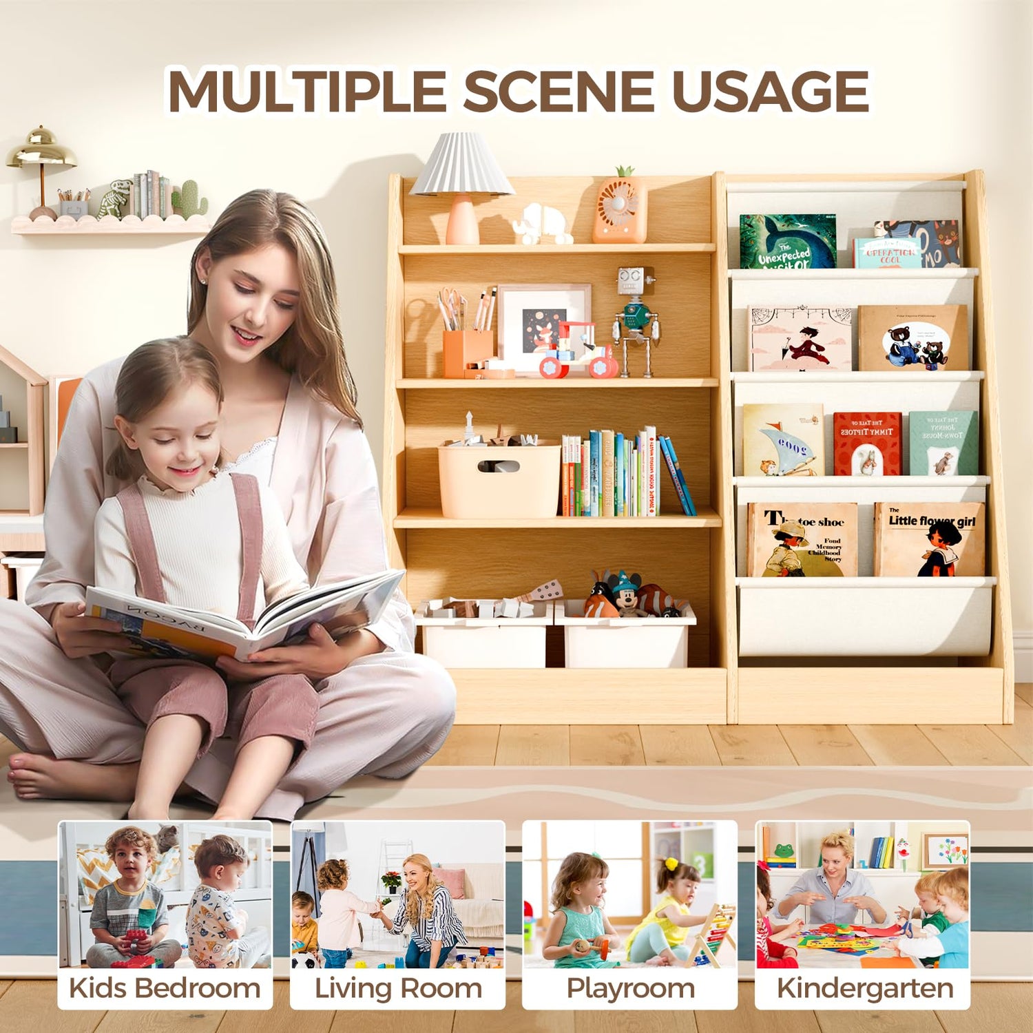 4 Tier Wooden Bookshelf, 4 Layer Sling Bookcase, Book Storage for Rooms, Magazine Rack, Bookshelf Nursery Wall, Book Organizer, Wood