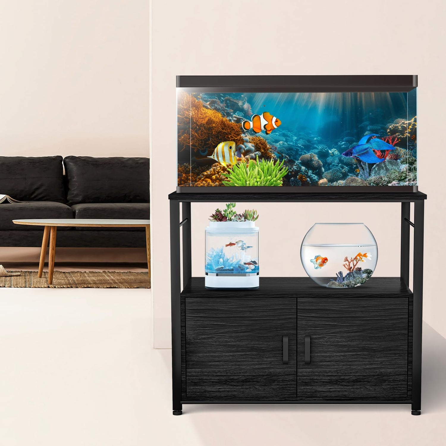 - Dual-Level Storage: Features a 2-tier storage space: The top platform accommodates large aquariums (L31.5"xW17.72"), while the lower shelf clearance is for filters, food, and accessories