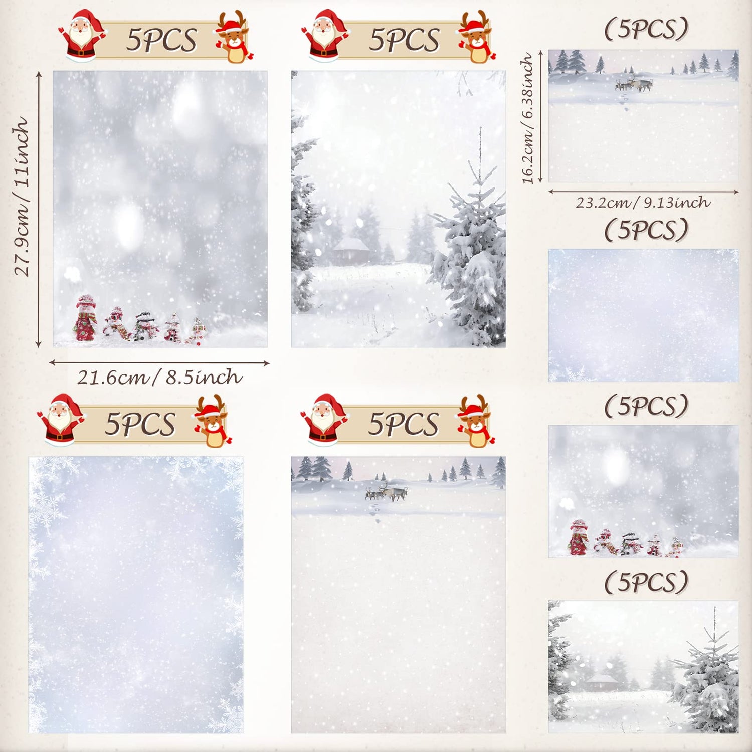 - Printable paper: the writing letter paper measures approx. 8.5 x 11 inch, and the matching envelope is approx. 6.38 x 9.13 inches; Totally 20 sets in the package, including 20 pieces stationary paper and 20 pieces winter envelopes; Easily printed from your home computer, fold and insert into your holiday greeting cards or mail as a standalone winter letter