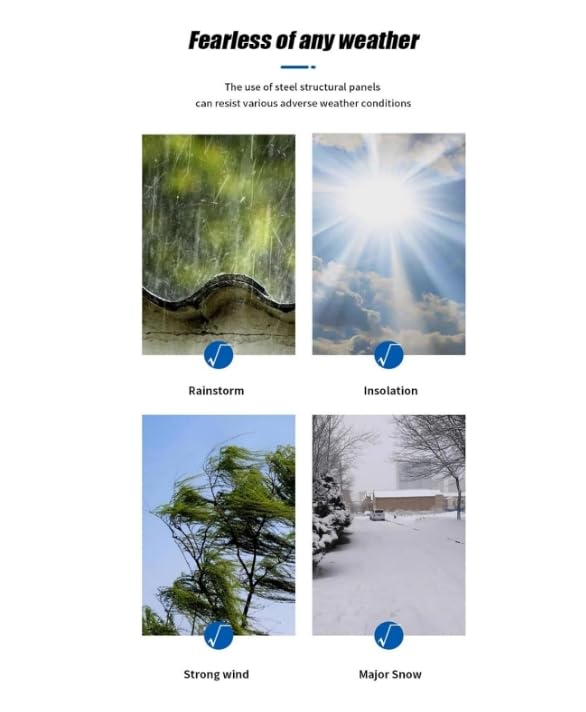 - Safe Construction - The main structure of this container house is made of a strong steel frame composed of sturdy square steel tubes, ensuring the stability and safety of the foldable house. The house is fire-rated Class A, wind-resistant up to level 11, and seismic up to level 9. Please note that snow accumulation on the roof should be regularly removed during heavy snowfall, and the height should not exceed 6.6ft.