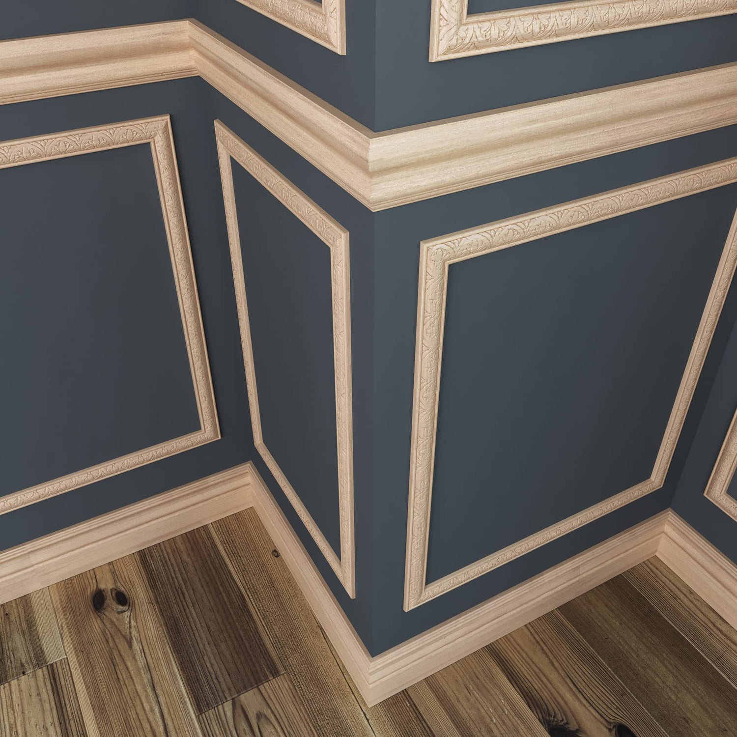 Details: Embossed decorative mouldings add a finishing touch to any craft or DIY project. The 1-1/4 inch embossed floral moulding can be used to add a decorative accent to your home. The durable hardwood moulding features an elegant floral design and accepts paint or stain to match your existing decor. It is also a great moulding for craft projects.