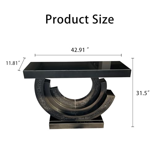 42.91" Mirrored Console Table with Crushed Diamond Inlay, Long Entryway Sofa Table with C-Shaped Base Modern Accent Narrow Tables for Living Room Hallway Foyer Entrance Black