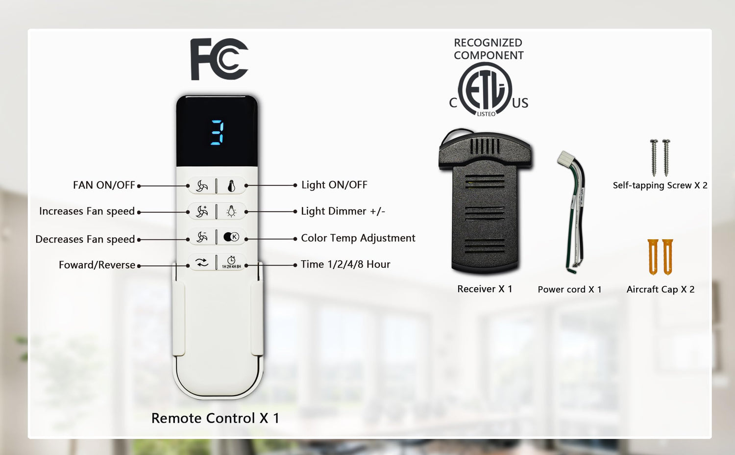 - ◆Silent Ceiling Fan: Silent reversible DC motor, positive rotation for ventilation and coolness in summer, reverse ventilation for air purification in winter, noise is less than 30dB. Features Remote control with ETL certification. 6-speed variable speed with timer (1/2/4 hours). Suitable for living room, bedroom, kitchen, porch, patio and office.