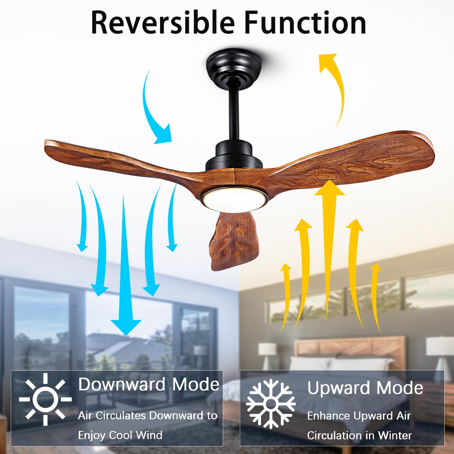 - ◆ Solid Wood Ceiling Fan: The ducrew 42” ceiling fan comes with 3 tung walnut-colored wood fan blades for high airflow and air circulation that can be freely deployed. It is available in 5-inch, 10-inch and 14-inch extensions, allowing you to choose the optimal height for your space, with an overall height from ceiling to base of 12 inches, 17 inches or 21 inches. It can also be installed at a 15-degree tilt.
