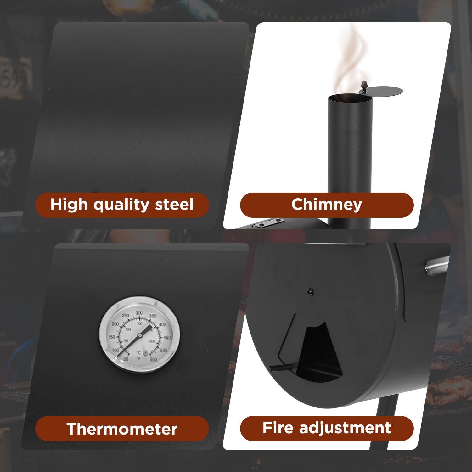 Details: As we all know, charcoal grill takes a lot of time and patience to smoke meat, which is not as simple as putting a piece of meat on the grill. Therefore, the bbq grill is essential to choose a multifunctional charcoal smoker to meet your needs. When you choose our barbecue grill, you are only one high-quality grill away from the professional chef.