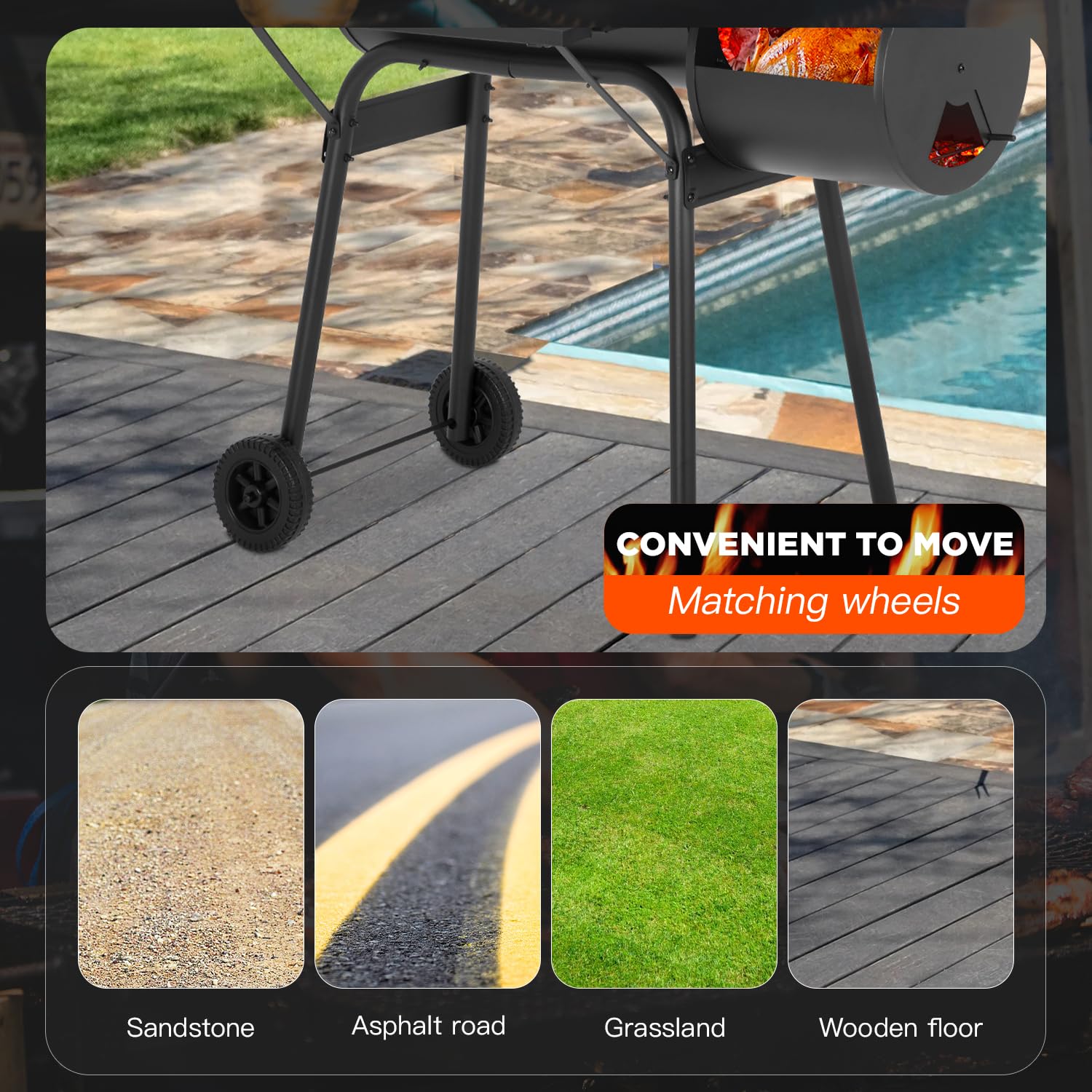 43-inch Charcoal Outdoor BBQ Grill - Portable Camping Grill for 6-10 People, Offset Smoker, Braised Roast, Patio and Backyard Picnic Grill