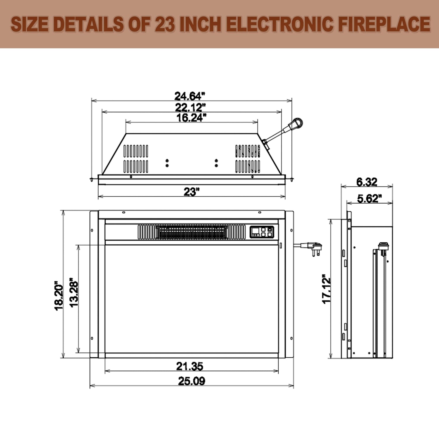 - 【23”Fireplace Insert】The 23”fireplace insert background with realistic red brick pattern, It has a realistic flame effect in 3 shades of light, creating a perfect Christmas atmosphere. In order to bring you great convenience, the flame, heat and timer can be controlled by not only touch buttons but also the handy remote control (a maximum available distance of 26 ft).