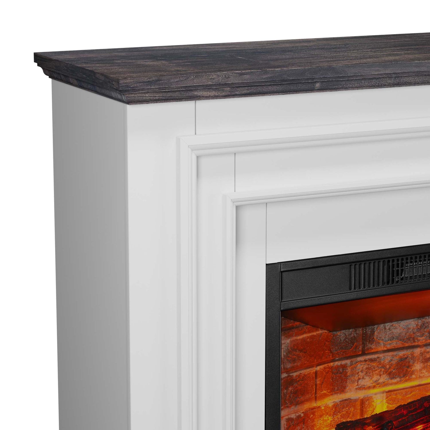 44" LED Electric Fireplace with Mantel, Fireplace TV Stand with 3-Dimensional Molding, White&Brown Entertainment Center with 23" Red Brick Fireplace Insert for Bedroom,Living Room