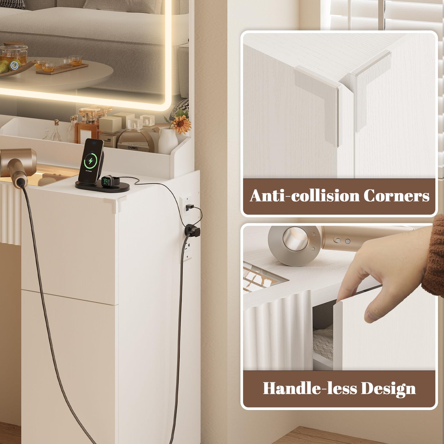 - 【Built-in Charging Station and Hair Dryer Stand】vanity with lights includes 2 standard electrical outlets, 2 USB ports, and a dedicated hair dryer stand, allowing you to conveniently connect and charge your hair tools, smartphones, tablets, and other devices.Stay organized and worry-free with our multifunctional girls vanity.