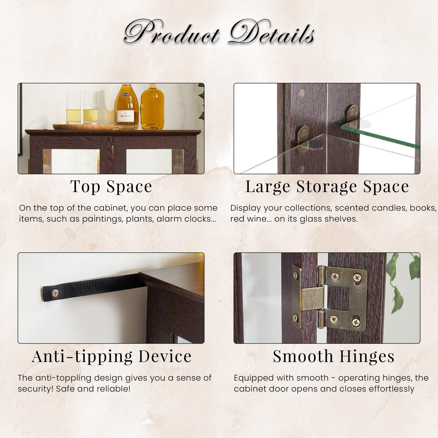 - [Premium Durable Construction] - Crafted from high-quality MDF with a sleek decorative finish, this glass display cabinet is built to last. Featuring tempered glass shelves that are heat-resistant and shatterproof, it combines durability with safety, making it a reliable and stylish addition to any home.