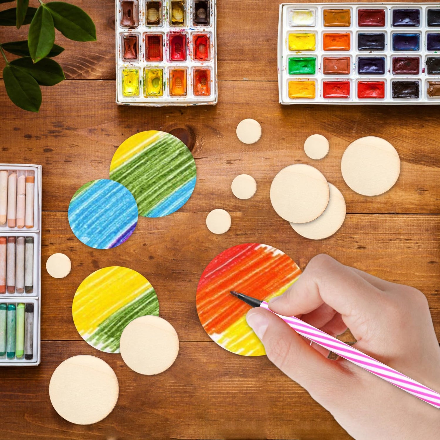 450 Pieces Unfinished Wood Circles for Crafts, 5 Size Wood Rounds Wooden Disc Circles Blank Natural Wood for DIY Painting Carving Art Craft