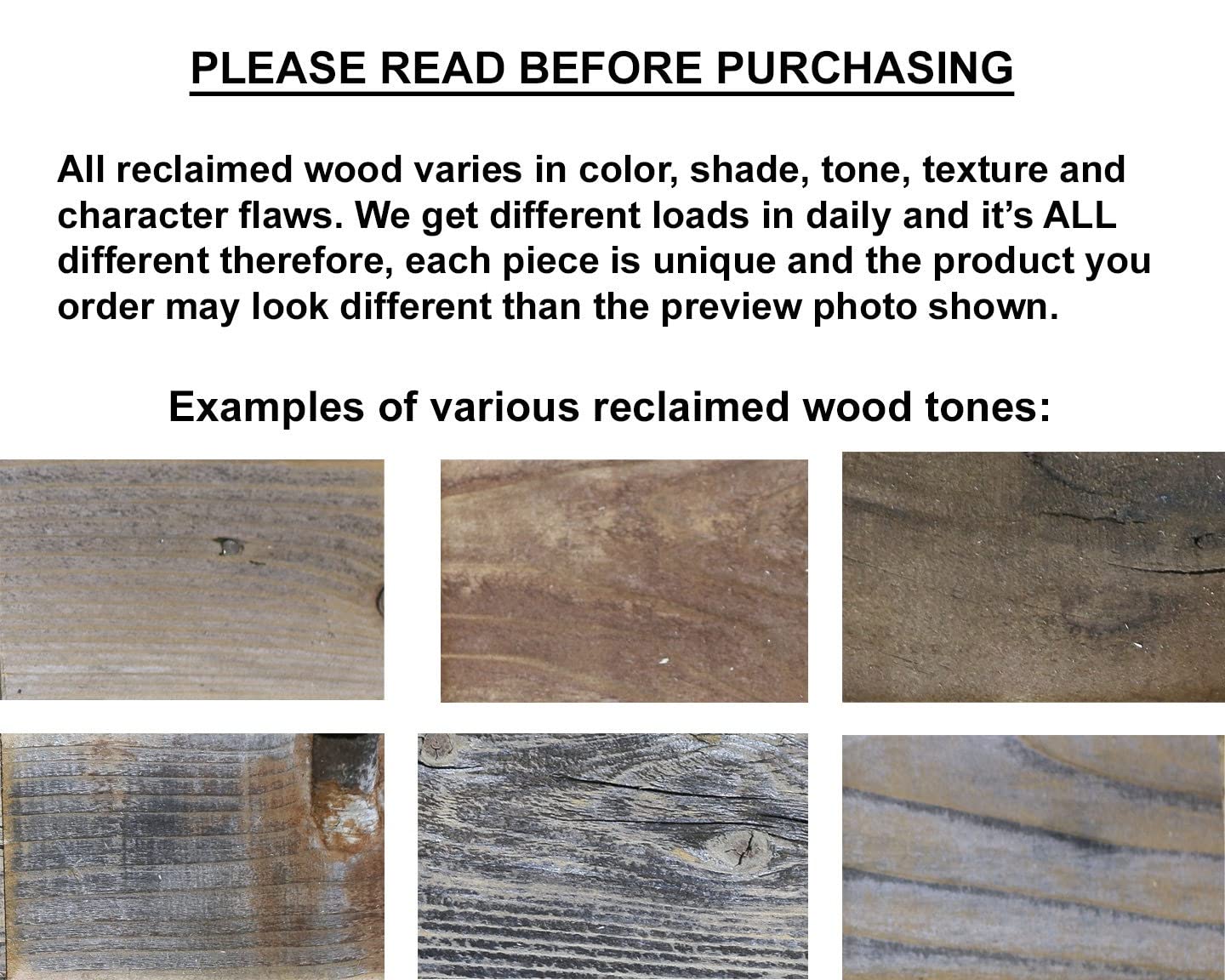 - Pre-paid return labels are not provided. Please understand the nature of our reclaimed wood before purchasing this product. Natural wood tones vary and your product will not look exactly as shown.