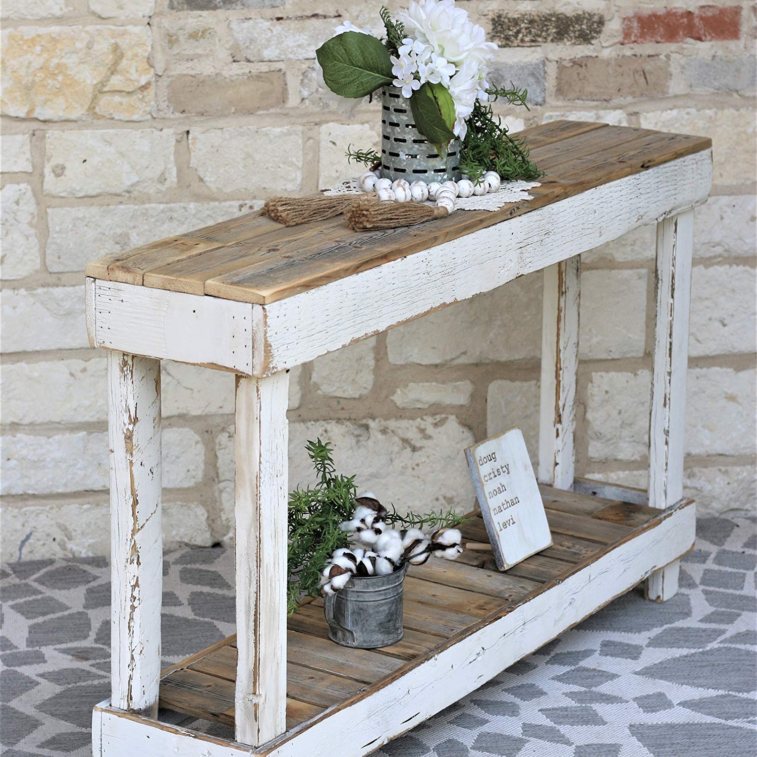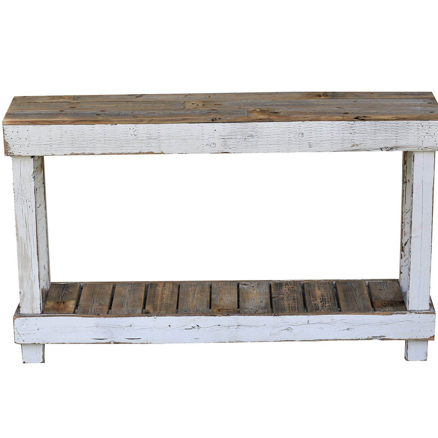 Details: ***If you choose to return this item then the shipping cost will be subtracted from the refund. Please ensure this product will work for space before ordering. Please understand the nature of our reclaimed wood before purchasing this product. This beautiful combo console table has been built from natural reclaimed wood and is perfect to showcase at any entry way or any area that needs some life. Table measures 46L x 10W x 28H and has been moderately distressed. The natural color has not been stained. To keep the genuine rustic look of this product we use reclaimed wood and we're always sure to make sure the surfaces are sanded smooth and splinter free as possible. Please keep in mind that no two pieces will look the exact same and the natural wood color will vary in shade, texture and tone (some more gray and some more brown). This is the result of natural wood weathering. Also, please keep in mind that old nail holes, knot holes, and cracks are a part of what adds the character to these one-of-a-kind pieces and can be expected.