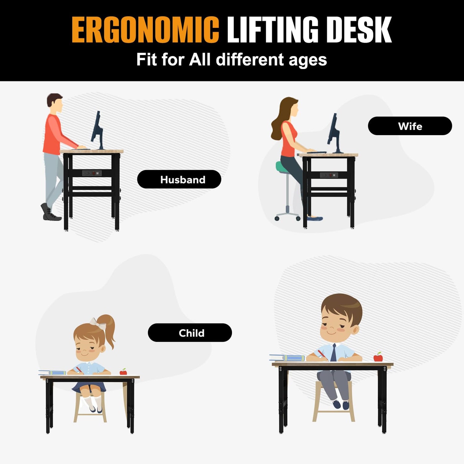 - Adjustable Height Workbench: The lifting desk can adjust the desktop height at will, with a height adjustment range of 28'' to 37'' (multiple different height settings), and the work tables for shop can adjust the height position according to your ergonomics, ensuring that you maintain optimal working comfort and reduce stress and fatigue during long working hours
