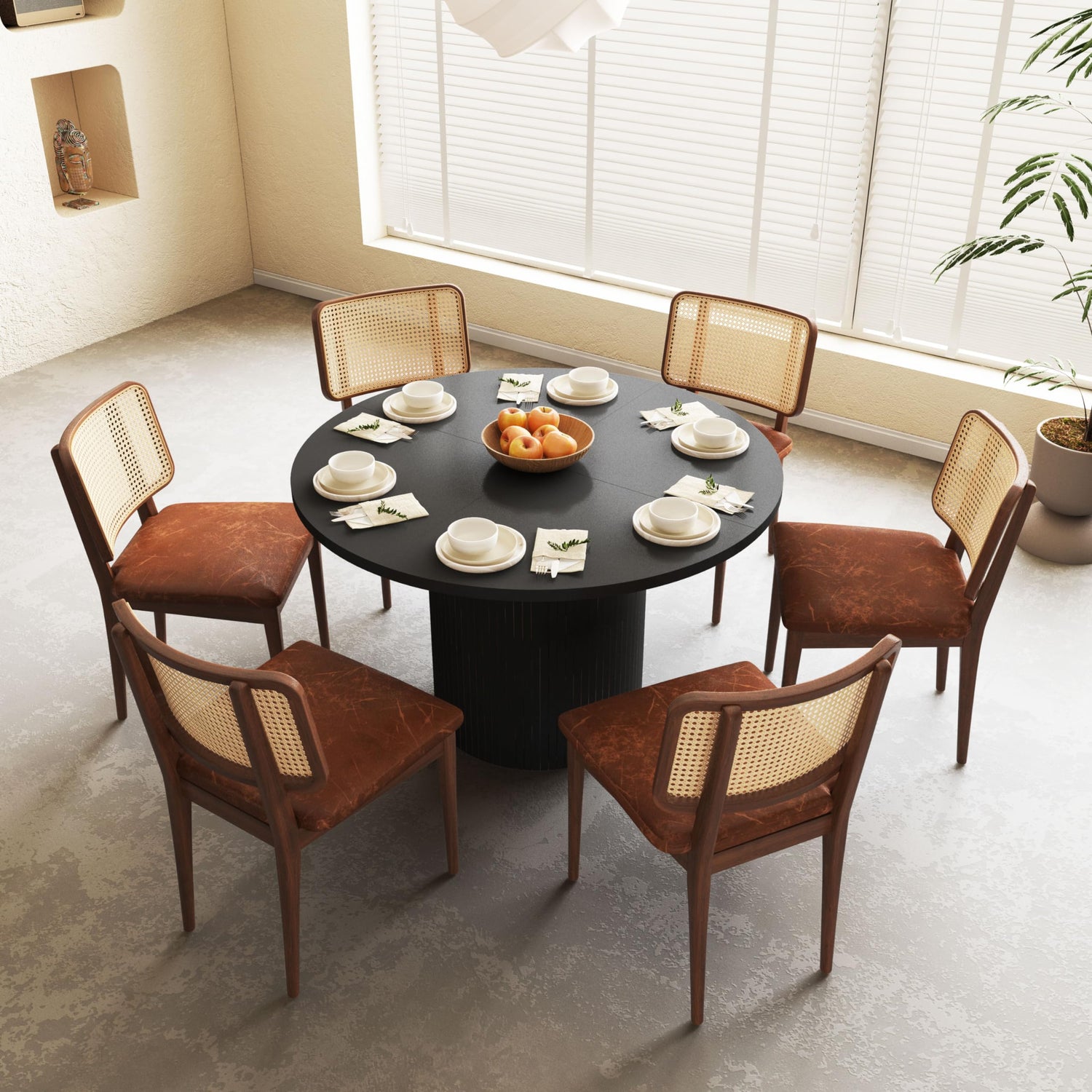 47 Inch Round Dining Table, Farmhouse Fluted Dining Kitchen Table, Modern Wood Small Circle Dining Table for Kitchen Living Room, Black