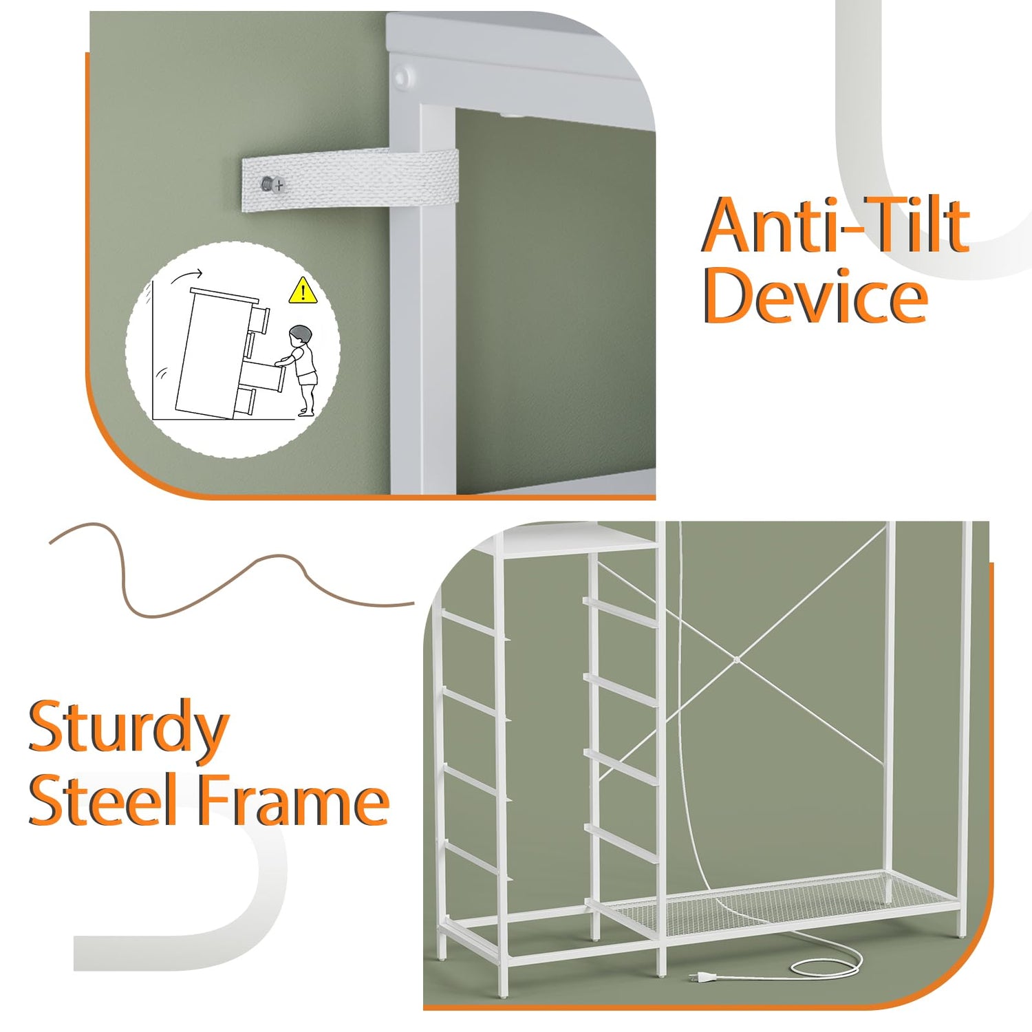 - 【White Dresser with Shelves fits Shoes】 Designed with a shelf at the bottom, this setup is perfect for piling up shoes or storage boxes, keeping longer clothes from sweeping the floor. This smartly designed feature enhances your storage capacity while ensuring shoes and essentials are readily at hand