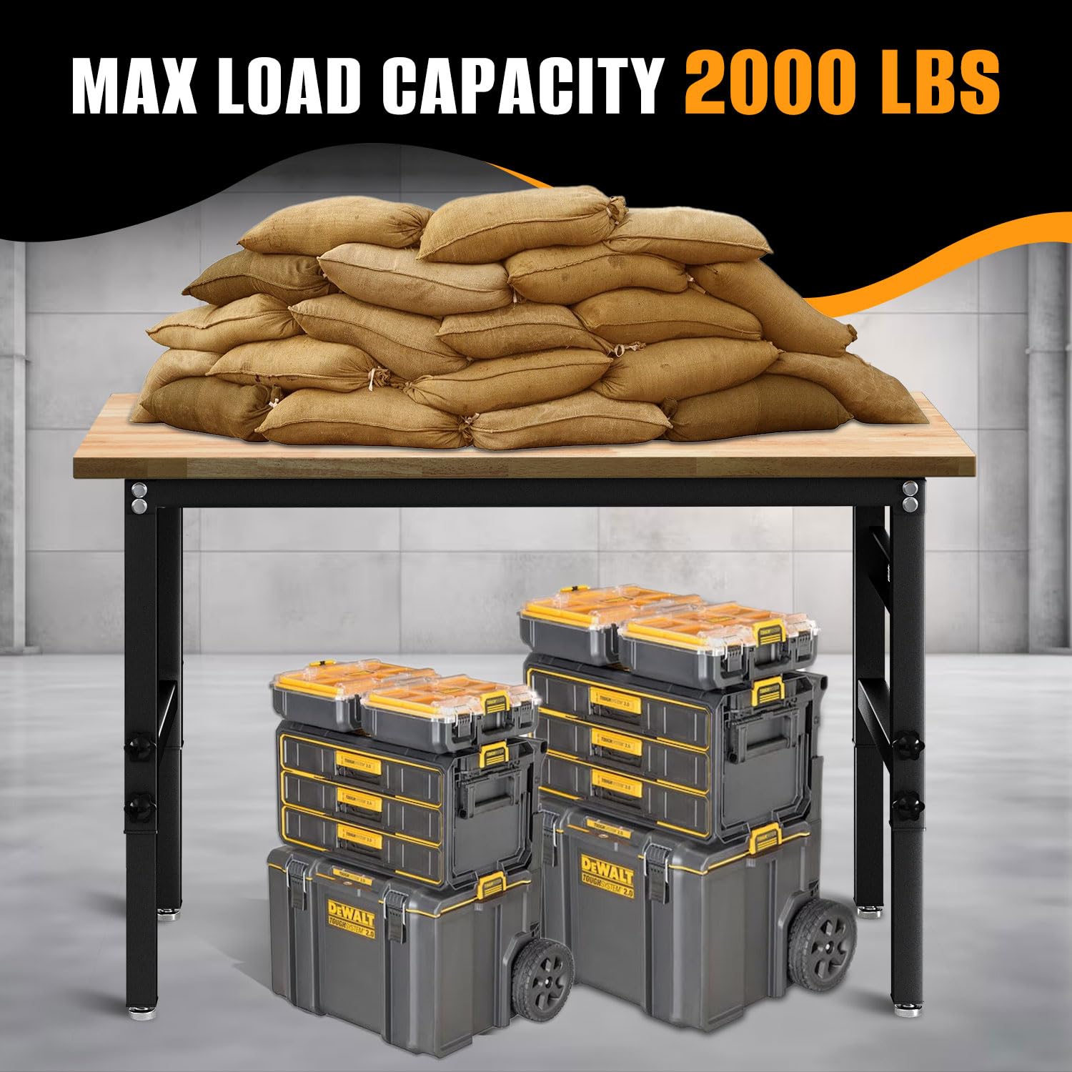 48" Adjustable Work Bench with Power Outlet & Soild Oak Hardwood Top - Heavy-Duty Worktable for Garage, Workshop, Office, Home - 2000 lbs Capacity