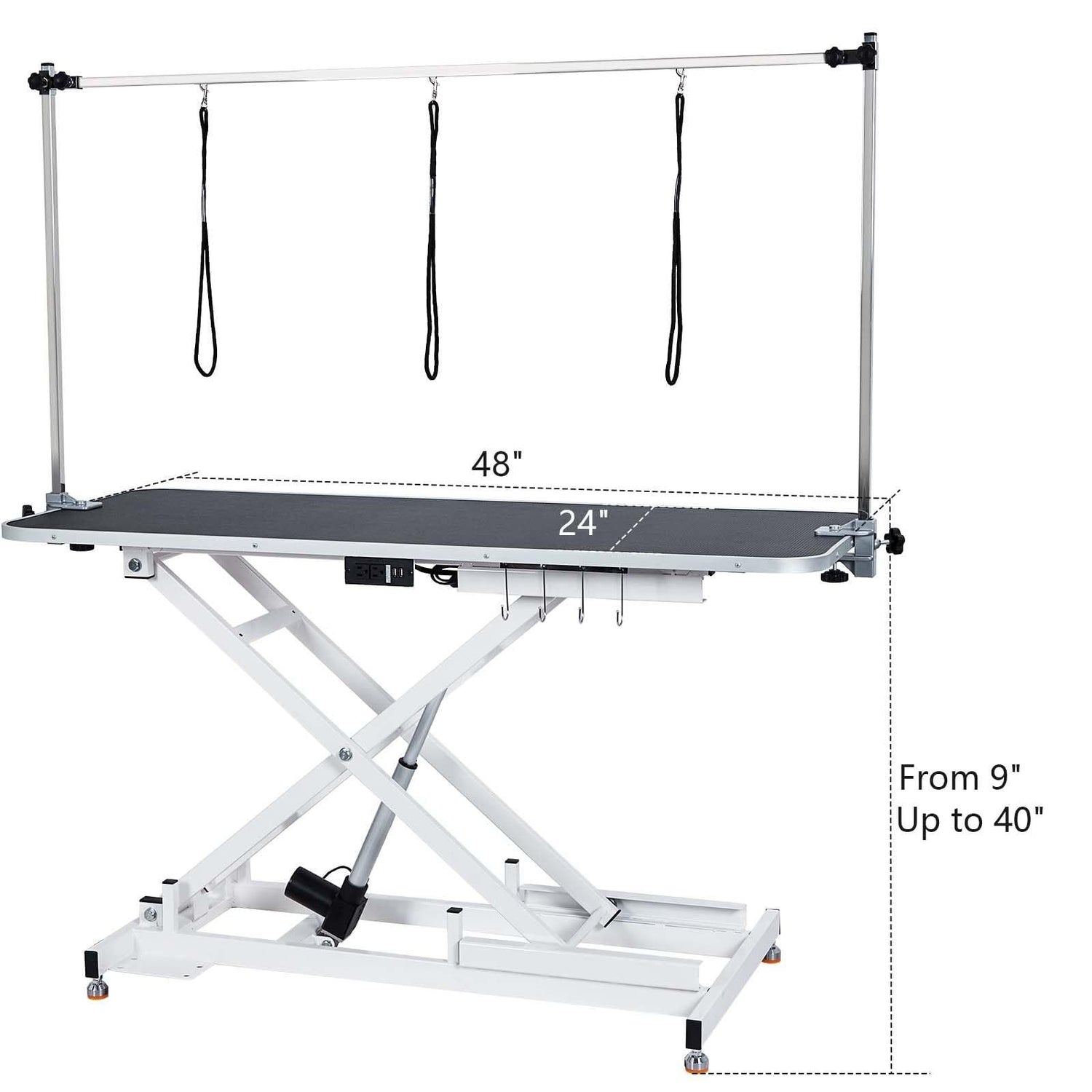 - 🐶Spacious & Sturdy Design: 48" Electric Dog Grooming Table - A reliable choice for large pets. Supports up to 330 lbs with a stable 48" x 24" tabletop. Adjustable height from 9" to 40".