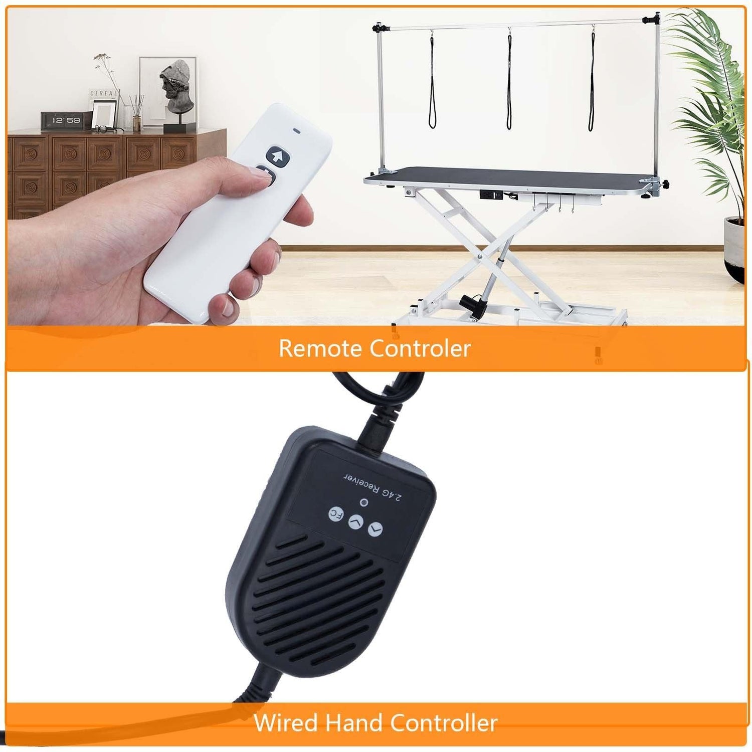 - 🐶Convenient Height Adjustment: 48" Electric Dog Grooming Table - Effortless height adjustments with wireless remote or hand control. Enjoy grooming convenience within a 15-20 meter range.