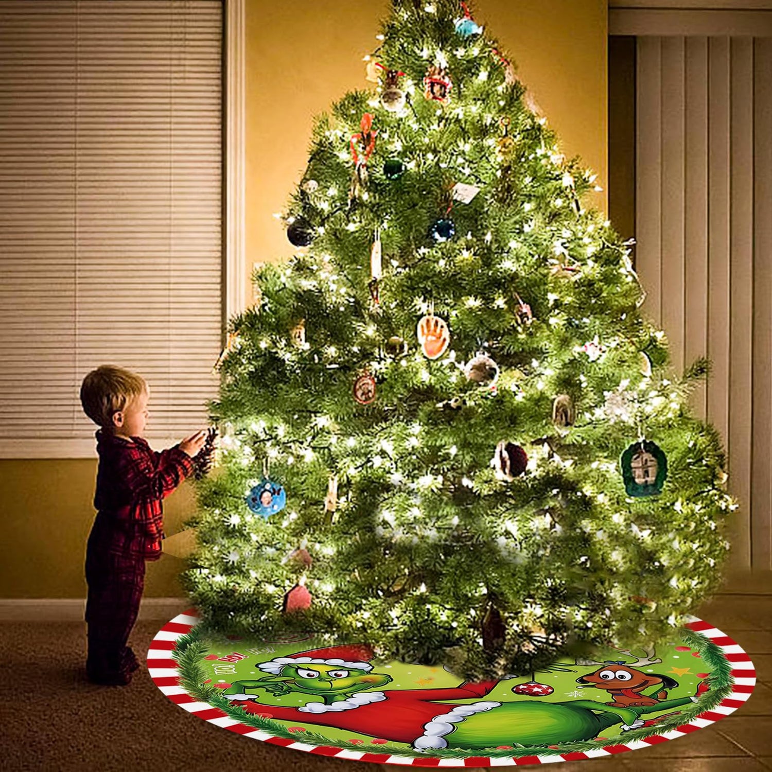 48 Inch Christmas Tree Skirt - Soft and Funny Farmhouse Christmas Tree Collar with Red & Green Trim Decor Xmas Holiday Decoration (Style A)