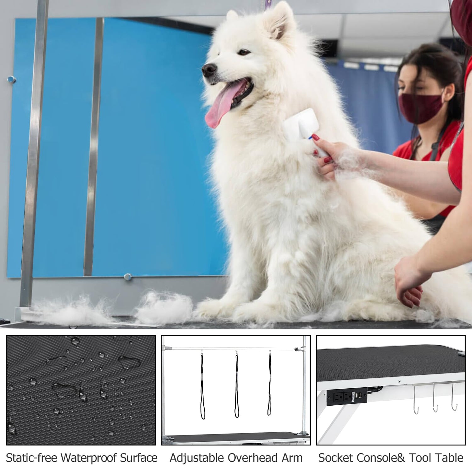 - ๐ Additional Features : To enhance your grooming experience, our electric grooming table includes practical features such as built-in USB sockets for conveniently charging your devices while grooming. Additionally, 4 hooks for hanging grooming accessories are provided, allowing for easy access and organization. These thoughtful features aim to make your grooming tasks more enjoyable and efficient