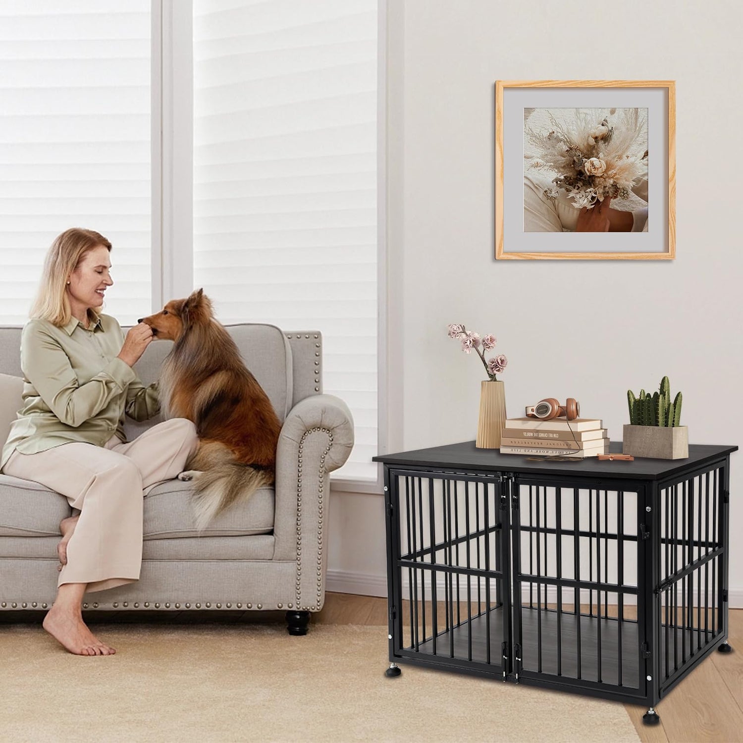 - 【Multi Functional Use】 This dog crate furniture can be used as pet crate, also as a side table, end table or night stand. The wide top provides enough place to put some decorations such as small/medium plant, magazines, family picture frames and night lamps and while saving precious space