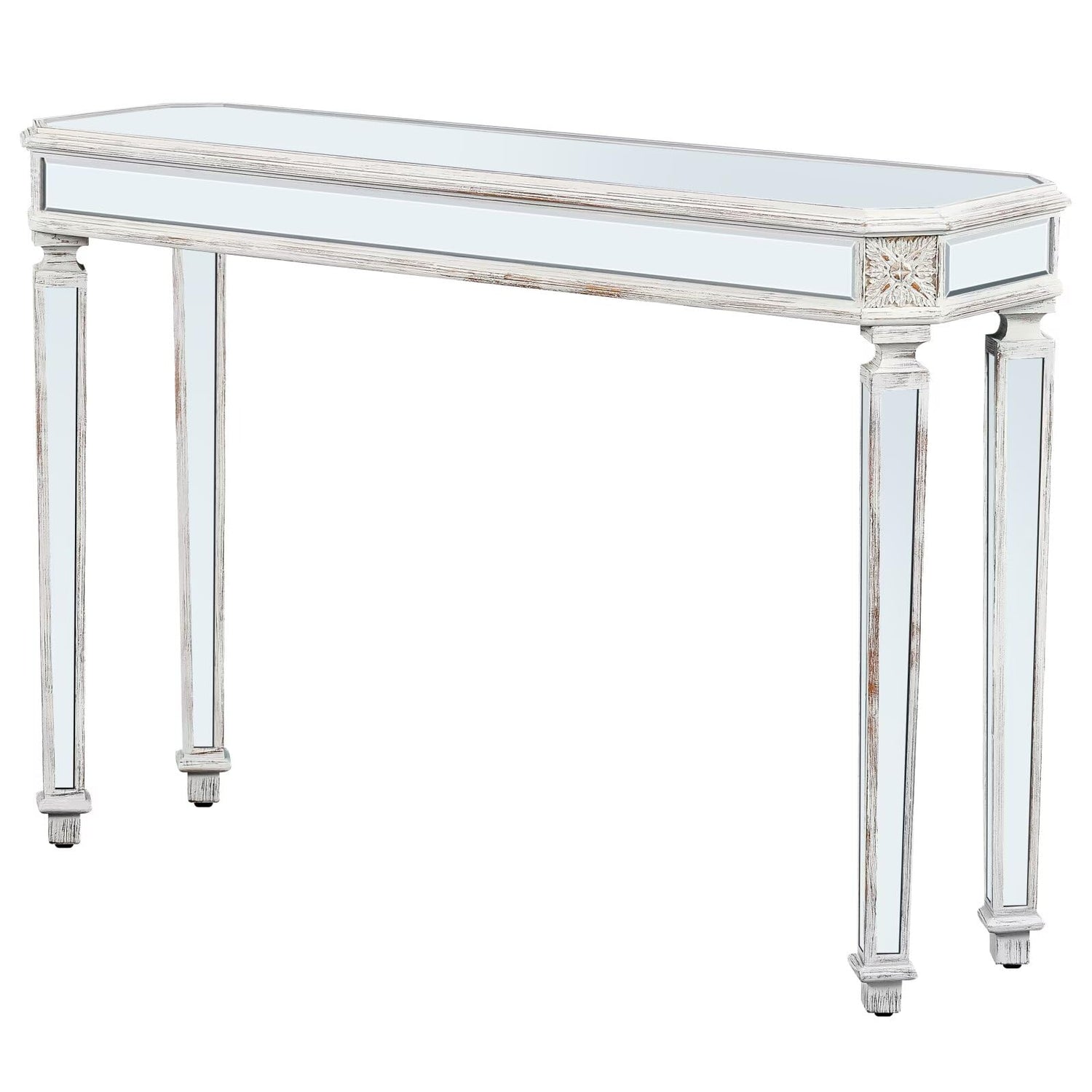 - Premium & Attractive - HD Mirror silver glass facets on all over the console table can reflects light very well, makes light bounce more instantly and brightly, catching and attracting everyone's attention to the amazing table once they walk into your house