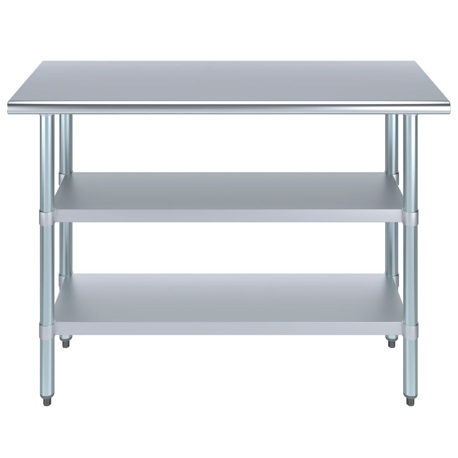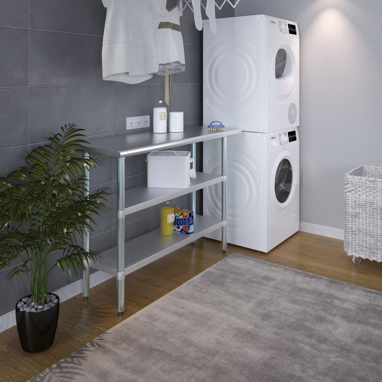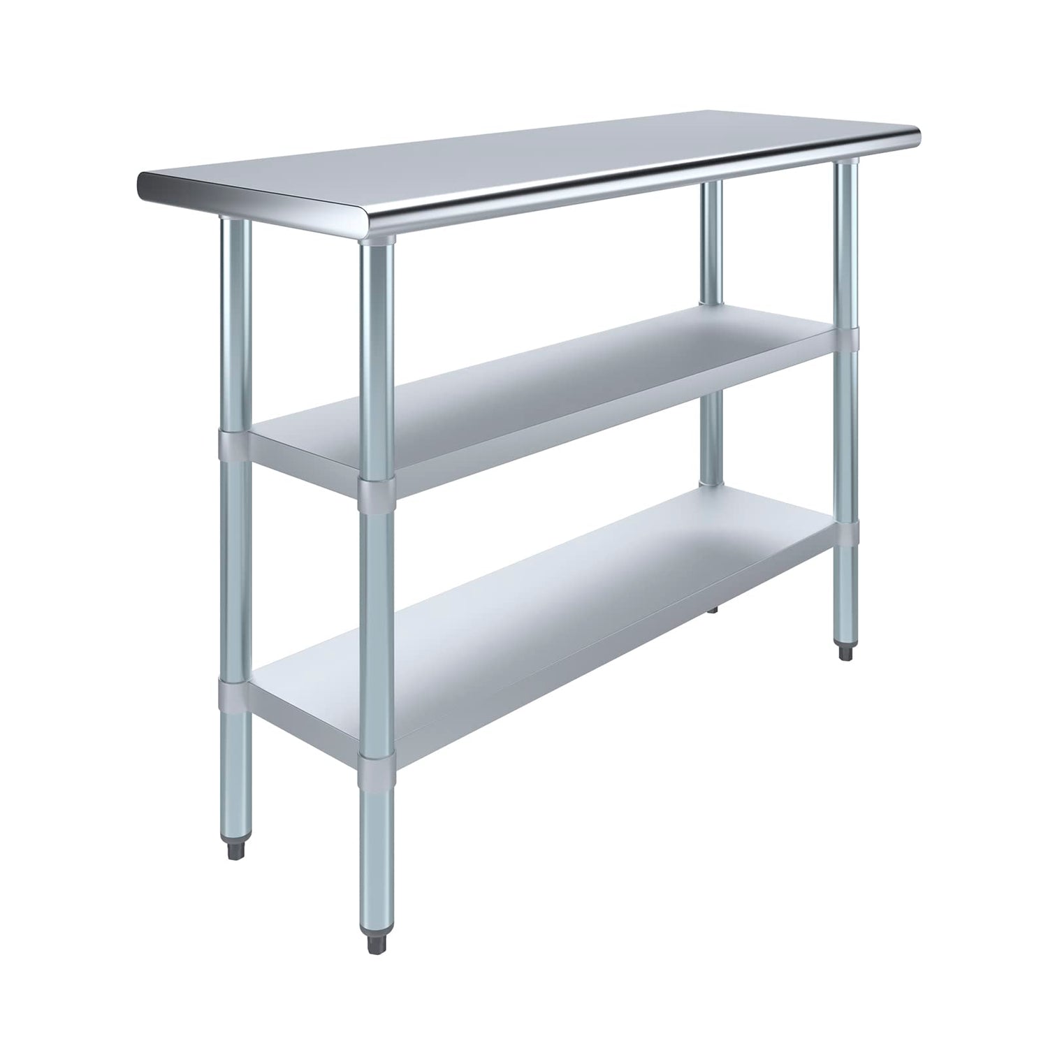 48" Long X 18" Deep Stainless Steel Work Table with 2 Shelves | Metal Food Prep Station | Commercial & Residential NSF Utility Table