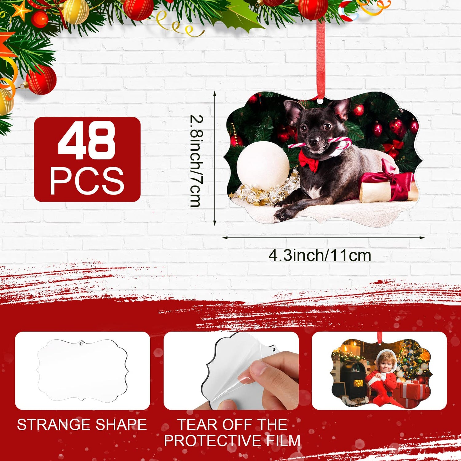 48 Pcs 4.3" x 2.8" Christmas Sublimation Ornament Blanks MDF Board Personalized Sublimation Printing Hanging Ornaments Christmas Ornaments Double Sided Heat Transfer Pendant with Rope for DIY Decor
