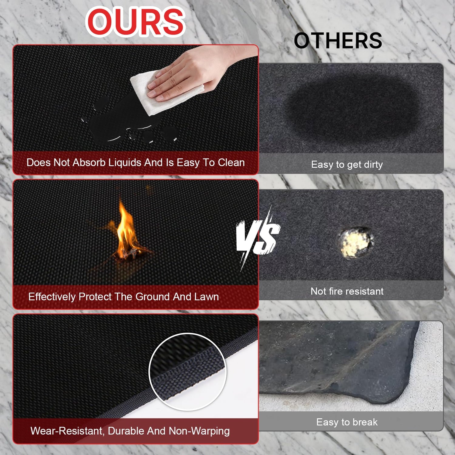 - 【Fire and Heat resistant】:RERAMDO grill mats for outdoor grill is made of fiberglass combined with double-sided silicone coating,provide heat resistance up to 2000℉, have fireproof, waterproof and oil-proof properties, effectively protecting decks, patios and lawns from grease splashes, this heat-resistant mat provides extra safety for floors. Precision stitched edges to prevent sticking, tear and curling, a great protector for your grill, fire pit and fireplace.