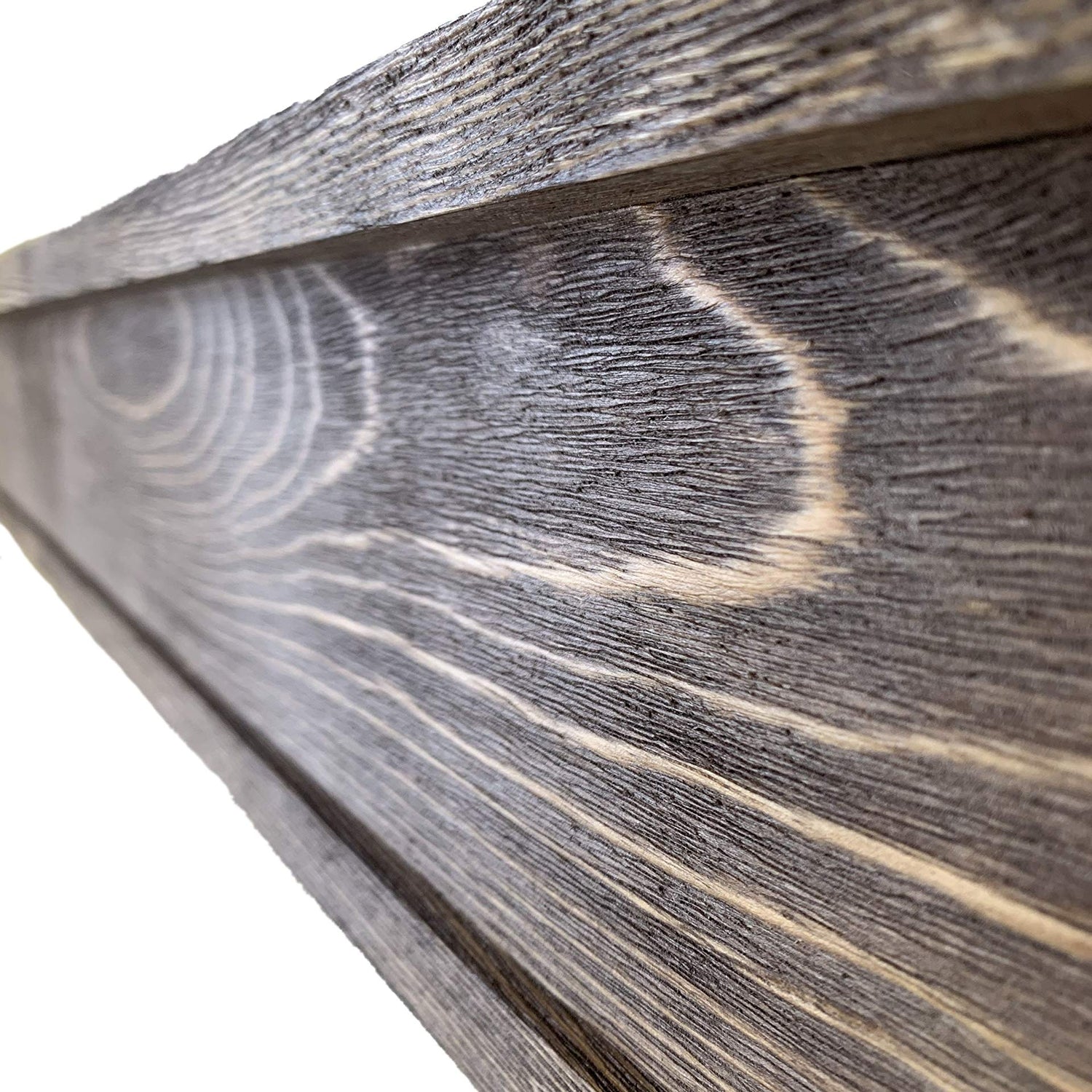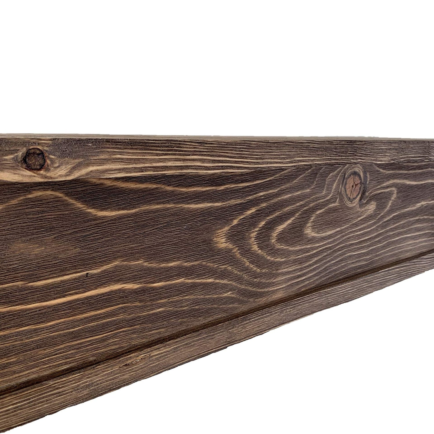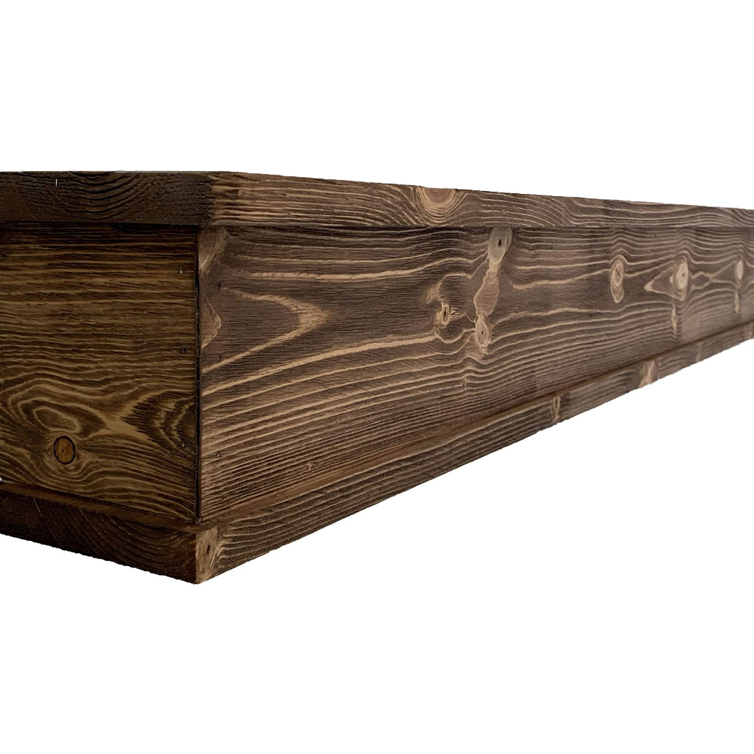 - These mantels have the look of reclaimed wood floating shelves, but have the durability of brand new sustainable wood. Each on looks like a heavy beam but ships light to help the enviroment.