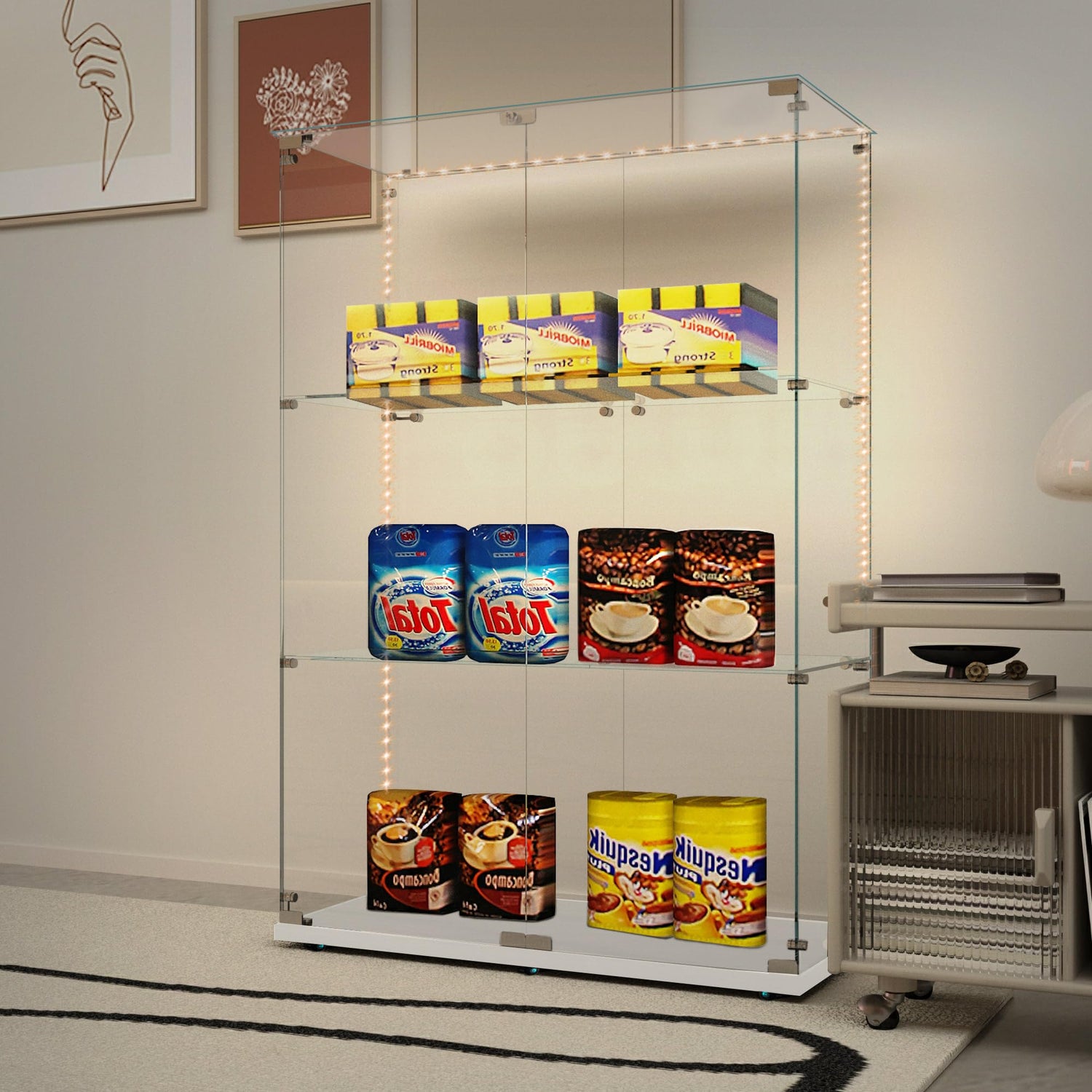 - Easy to Assemble: Glass Display Cabinet comes with clear instructions and all parts were included, easy to put together. Adjustable feet can hold weight up to 80lb. Each display cabinet comes with a fixing device. Recommend securely fixing the glass cabinet onto the wall to prevent tipping over.