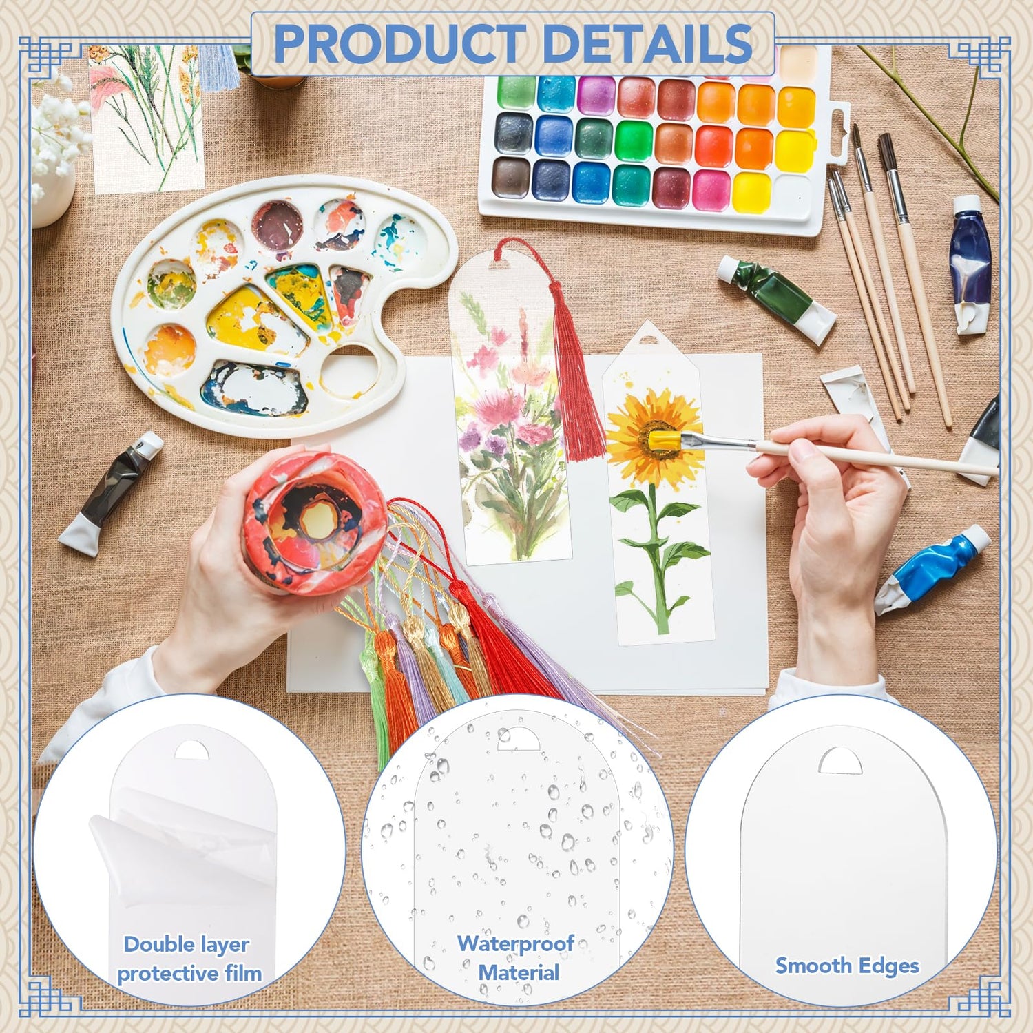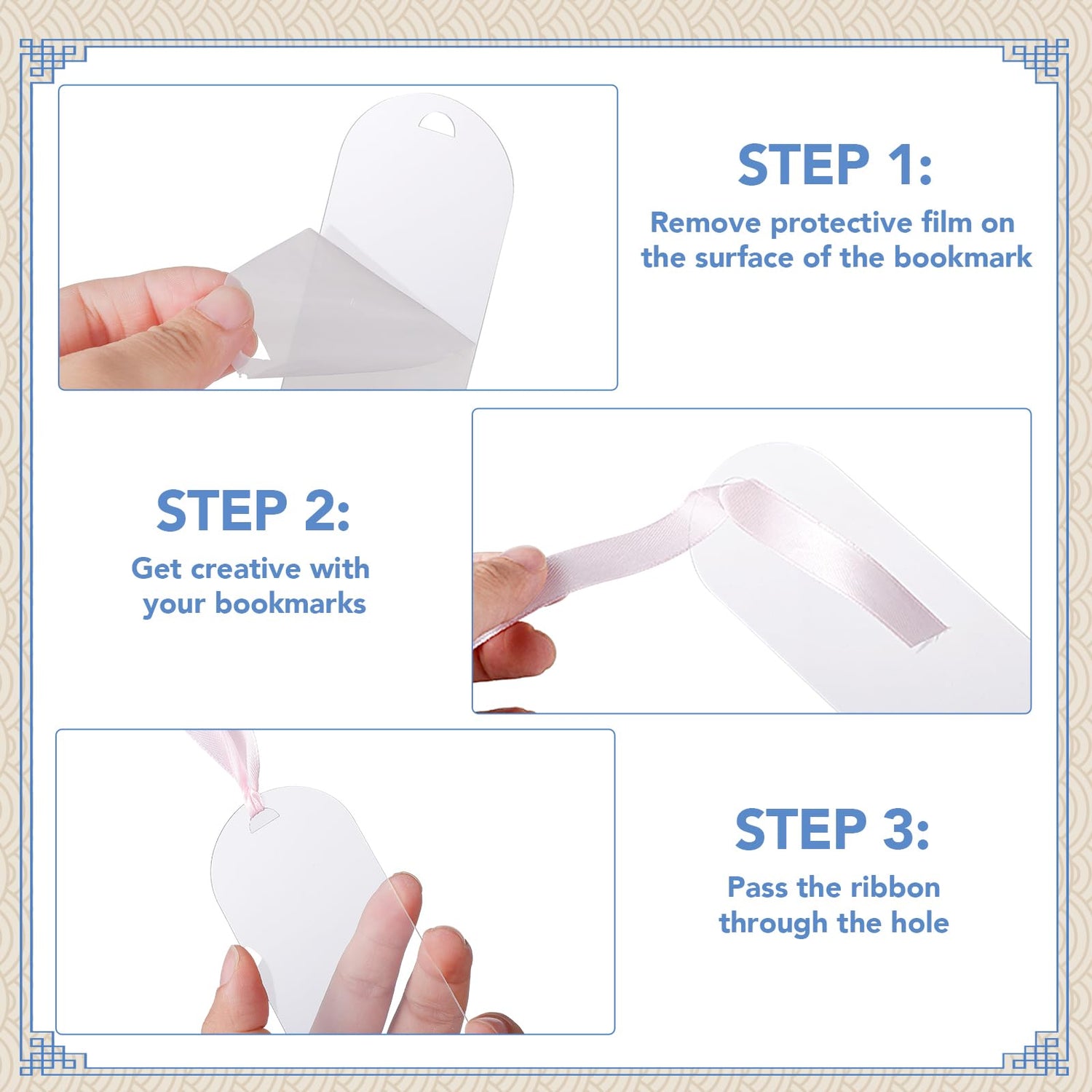 - Package Includes: 49Pcs acrylic bookmark blanks kits, includes 24 blank acrylic bookmarks in 2 sizes, 24 pieces of 12-color tassels, 1 roll of pink ribbon. Note: Please tear off the protective film on both sides of the bookmark surface before use