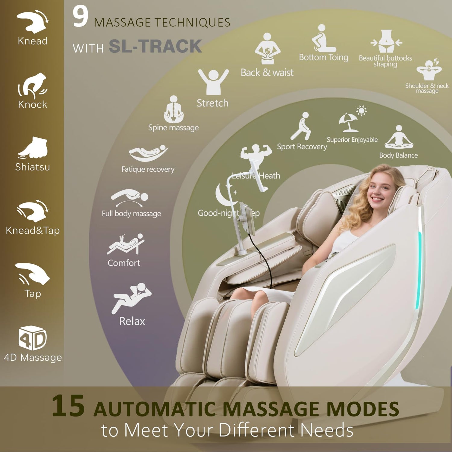 - Massage Chair Full Body & Shiatsu-style Technology:Experience deep relief with our full body zero gravity massage chair. This chair features advanced 4D technology with SL-track rollers that target your neck, shoulders, back, and thighs for a deep shiatsu-style massage. With multiple auto programs and techniques featuring calf massager and foot rollers, it’s the premium massage chair designed for muscle relaxation and post-workout relaxation.