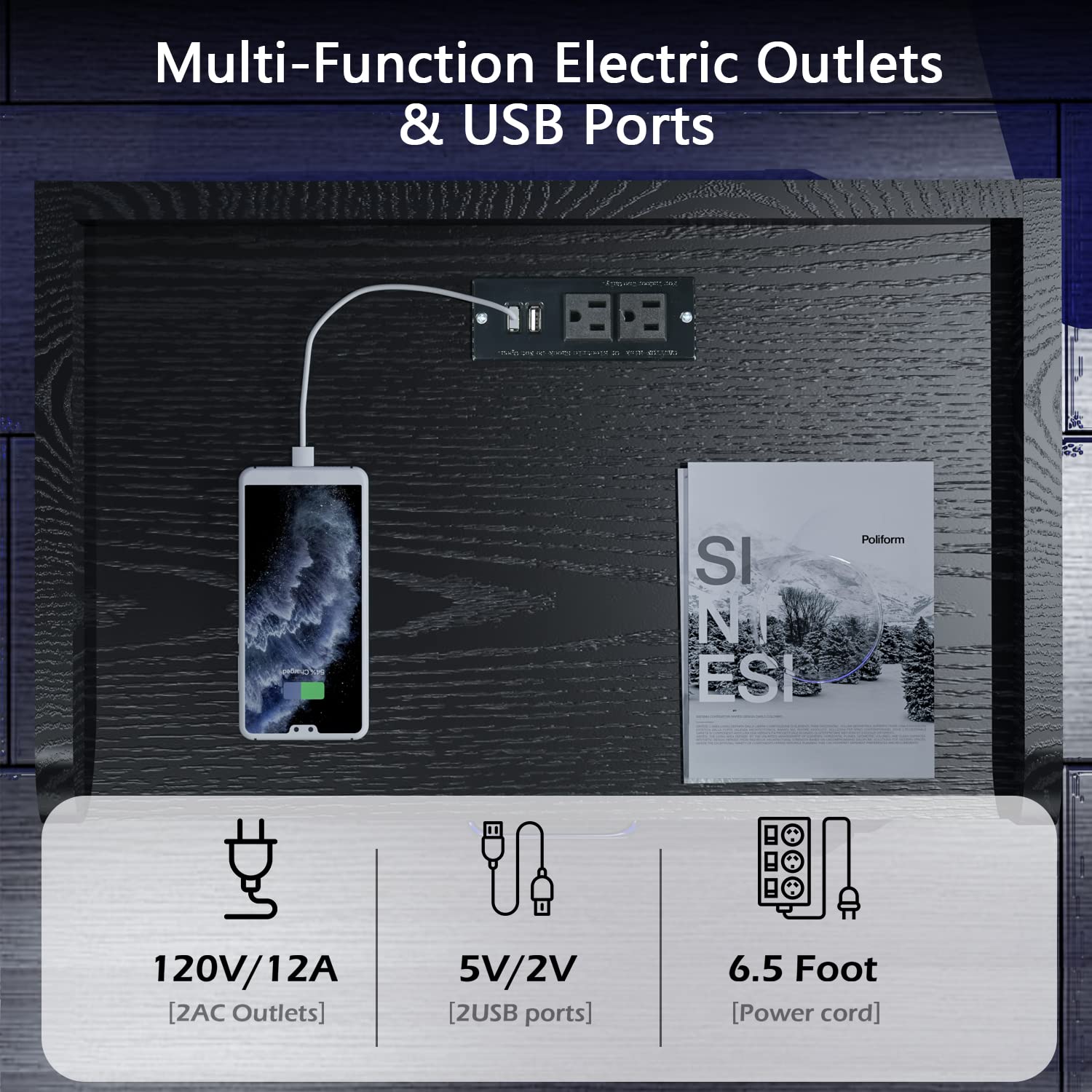 - [Black Nightstand with Charging Station]: This LED Nightstand with charging station has 2 standard plug Outlets and 2 USB ports, allowing you to charge multiple electronic devices at the same time, such as mobile phones, desk lamps, pads, computers, and more. This led night stand with charging station comes with a 6.5ft long power supply cable, making it easy to connect and move around the room when you use it.