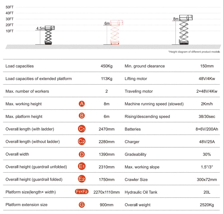- Features a self-propelled electric motor, allowing easy movement and precise control of the lift for seamless operation in tight spaces.