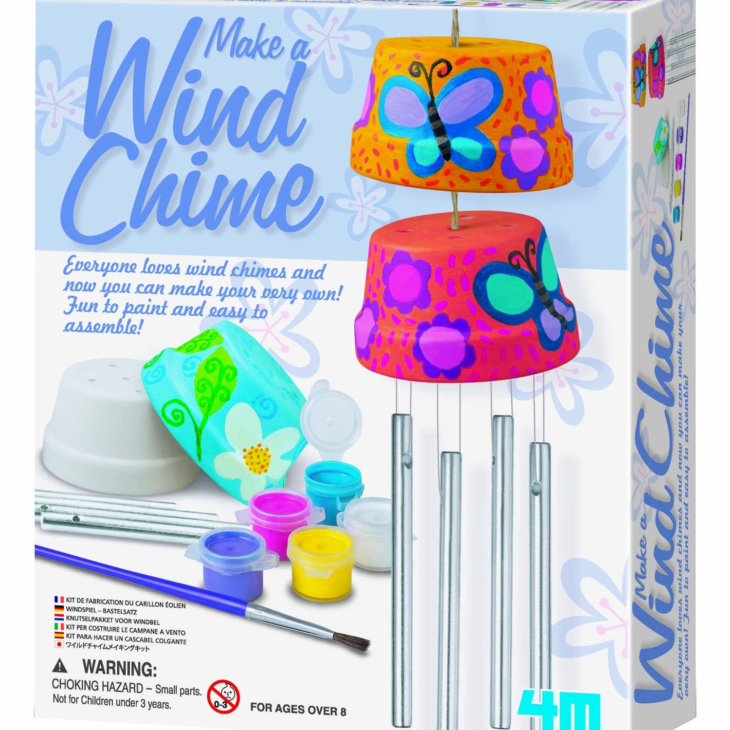 Details: The 4M Make A Wind Chime Kit is a fun and functional activity for kids of all ages. The Make A Wind Chime Kit combines the science of wind power with arts and crafts materials to create and personalize a pair of beautiful wind chimes. This kit includes two terra cotta pots, a paint strip and brush, cord, line and chime rods. The simple design is easy to assemble and fun to paint. When hung, the wind chimes create soft, musical sounds. Recommended for ages 8 years and up. Sold in a set of 6 kitts.