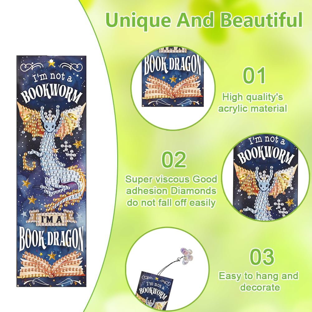 4pcs Diamond Art Bookmarks,Diamond Painting Bookmark Kits for Adult,DIY Gem Art Small Crafts with Rhinestone Tassel,Paint by Diamonds for Graduation Birthday Reader Gifts (Dragon)