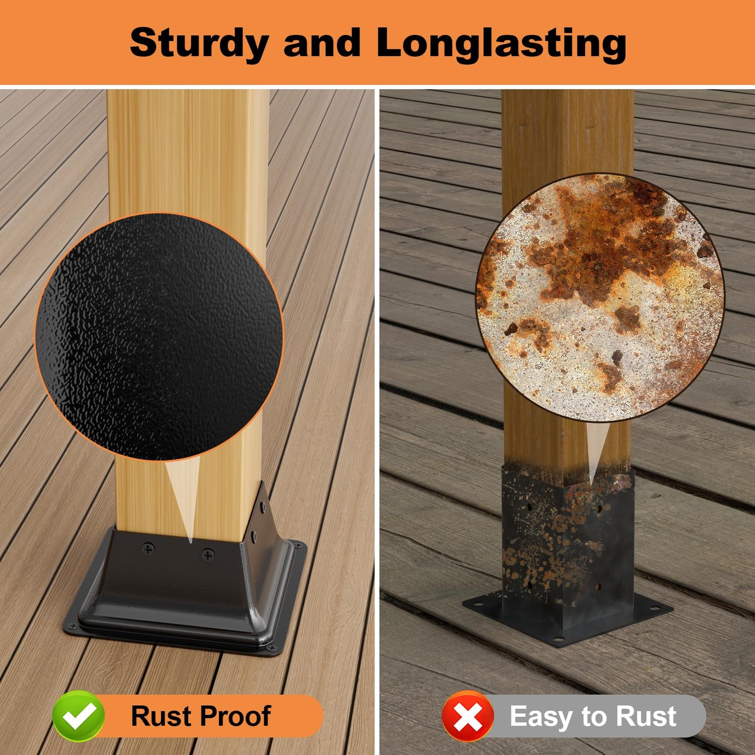- 【Wide Use】The post anchor base is specially designed for many places that need to anchor wood posts. It is great for deck supports, porch railings, handrails, fences, benches, and mailbox posts. The post anchor base is a perfect decoration for many scenes such as doorways, gardens, courtyards, porches, etc.