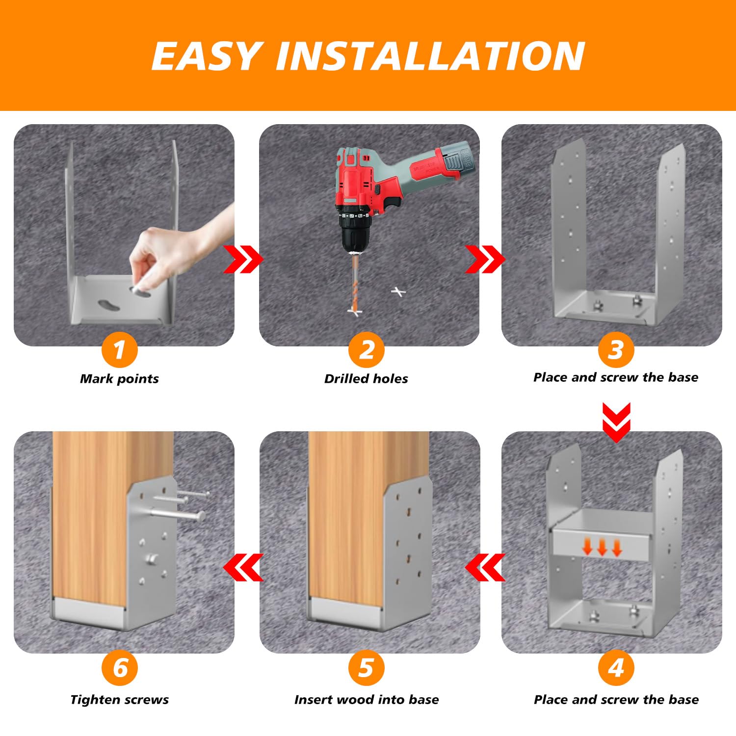 - Easy Installation with Free Accessories Included: Simply confirm the size of your wood post and secure it with the provided bolts and self-tapping screws. With pre-drilled holes for extra stability and all necessary hardware included