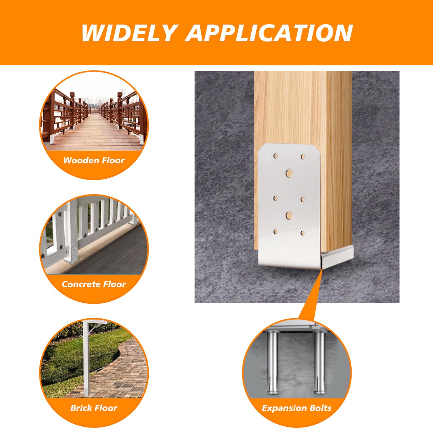 - Premium Stainless Steel Construction: Made from 2mm thick stainless steel and coated with fiber varnish, this post base is rust-resistant. The 1" raised platform prevents moisture damage by keeping the wood post off the ground, extending its lifespan