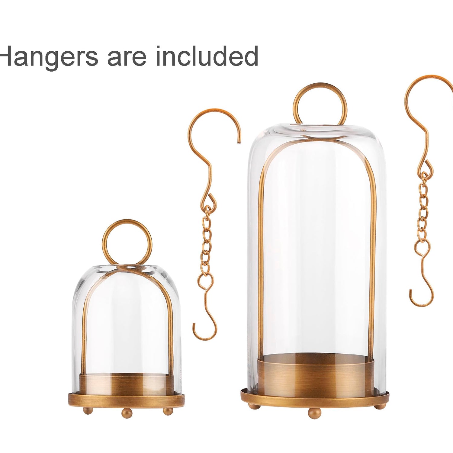 Details: Metal Candle Holder With Glass Dome For Pillar Candle In Set Of 2 In Brass Finish Suitable For Industrial, Farmhouse, Shabby Chic Style. Also Sutable For Plants