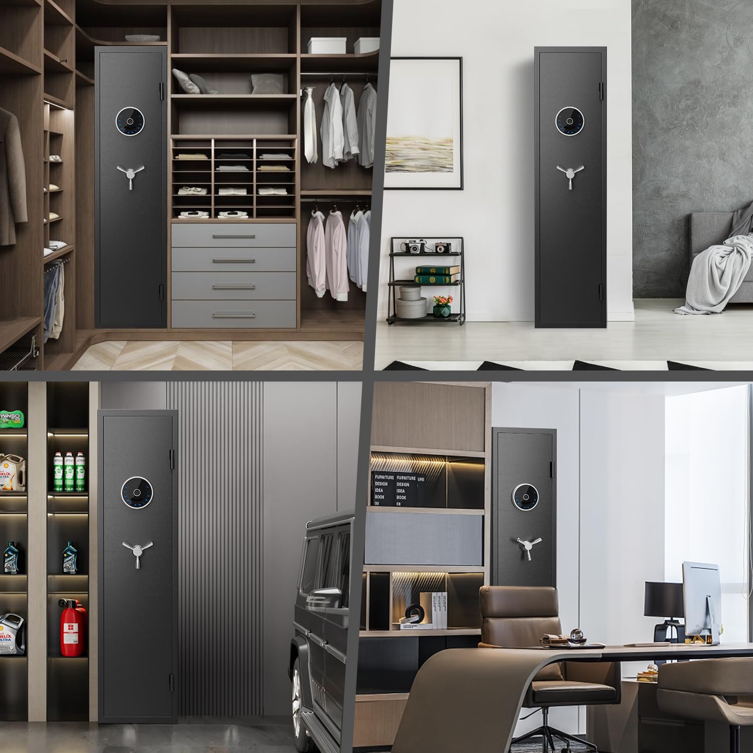5-6 Rifle Gun Safe, Biometric Gun Safe, 57" Long Gun Safe for Rifles and Pistols, Quick Access Gun Cabinet for Rifles and Shotguns with Backlit Touch Keypad, Dual Alarm System, 3 Gun Racks