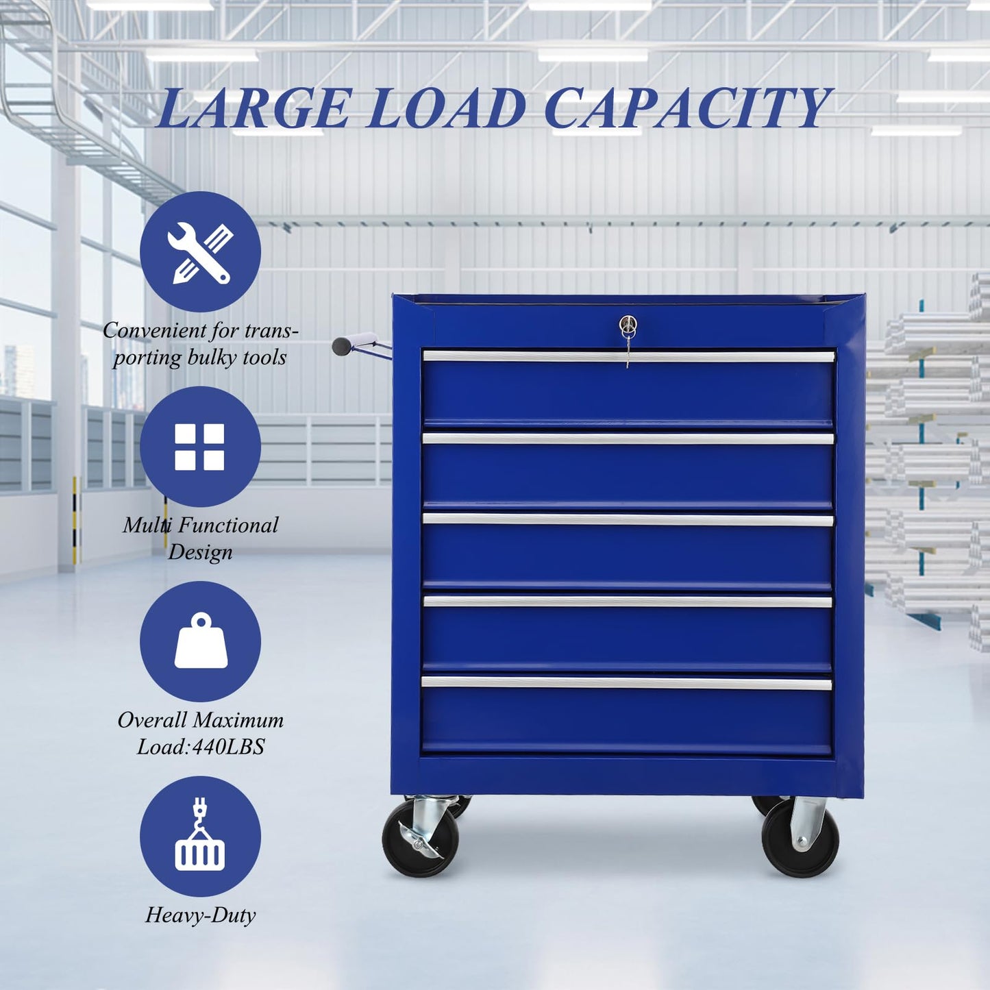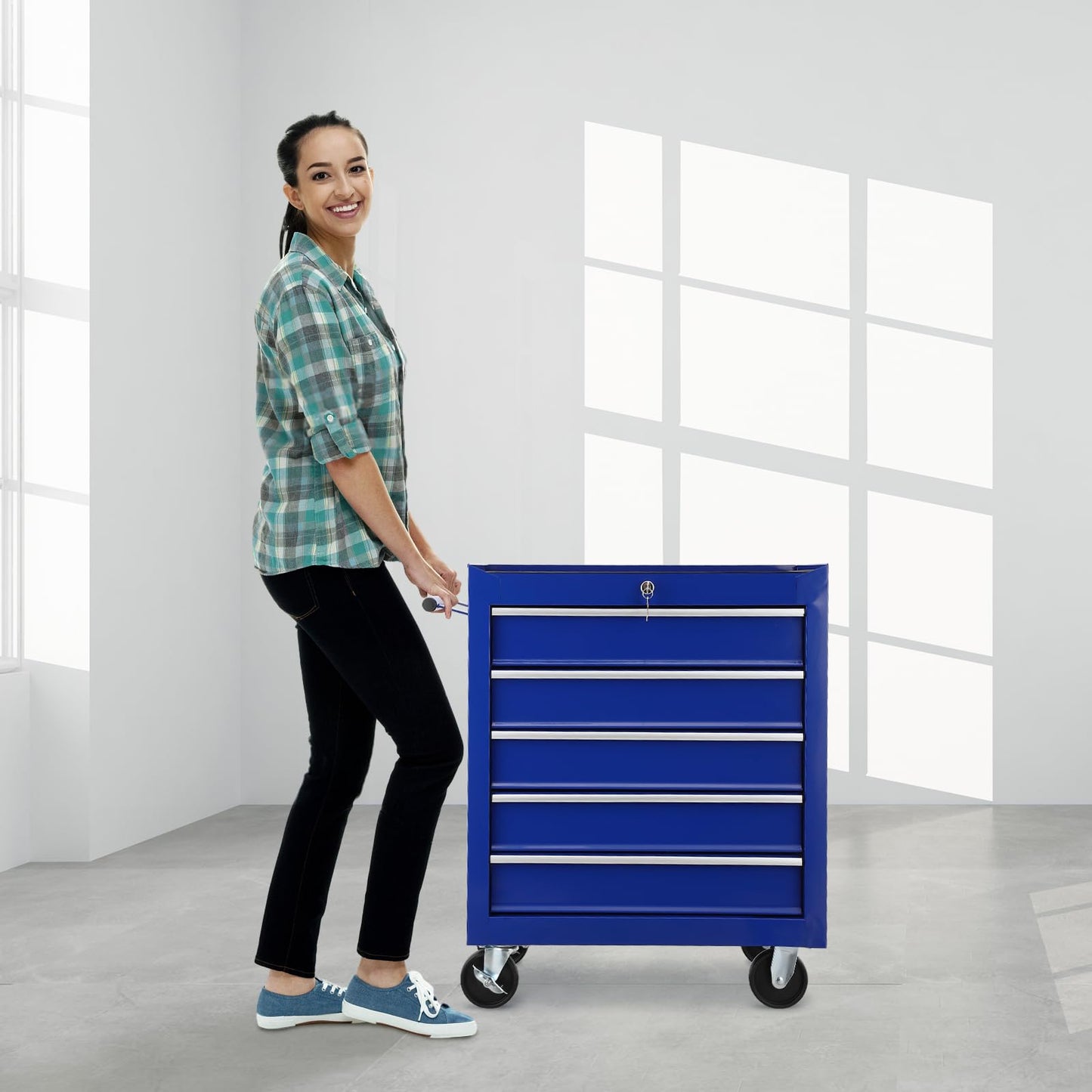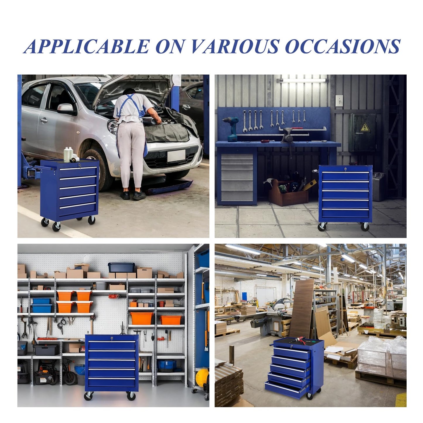 5 Drawer Rolling Tool Box,Blue Locking Tool Chest With Drawers,Tool Cabinets On Wheels for Garage Storage,Warehouse,Workshop,Repair Shop Mechanic Tool Cart